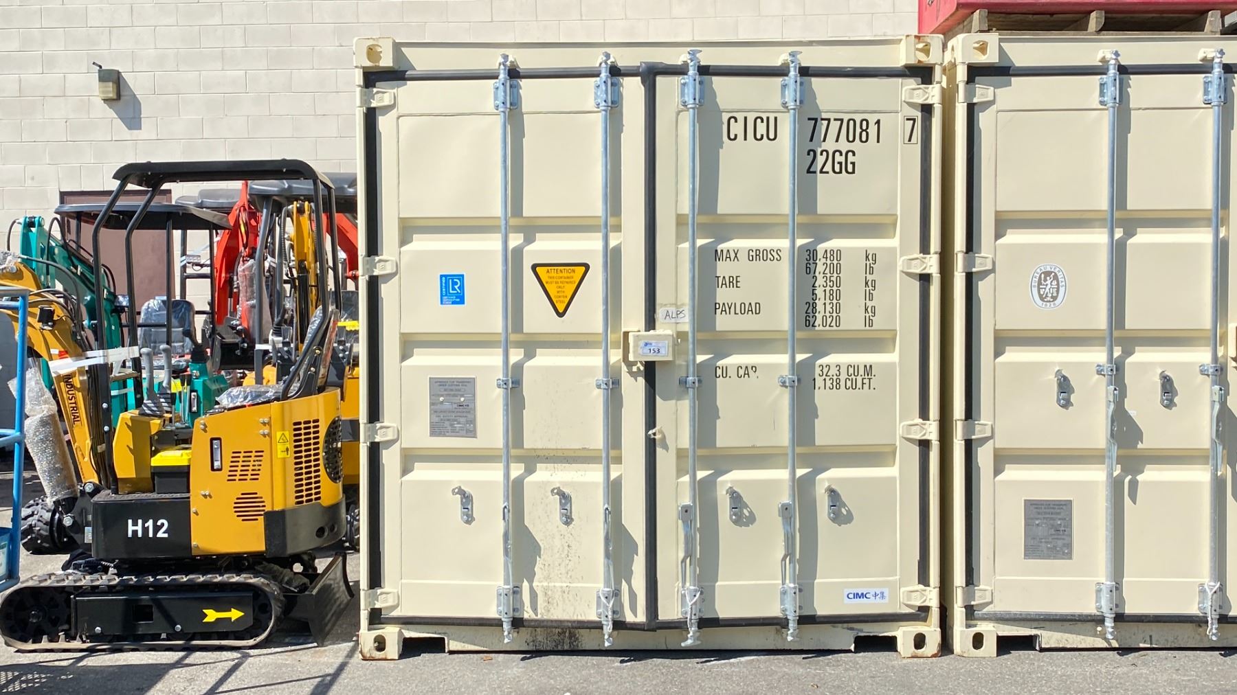 BEIGE 20' STANDARD CUBE 67,200 MAX CAPACITY INDUSTRIAL TRANSPORT CONTAINER WITH DUAL SWING REAR DOOR WITH CAM LOCKS 20'L X 96"W X 102, CONTAINER #CIMU 777081 7 *REQUIRES HIAB CRANE OR TILT DECK TRAILER TO TRANSPORT LAST DAY*