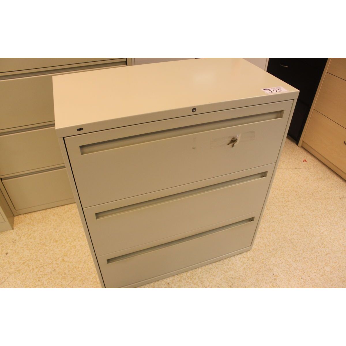BEIGE 3 DRAWER LATERAL FILE CABINET