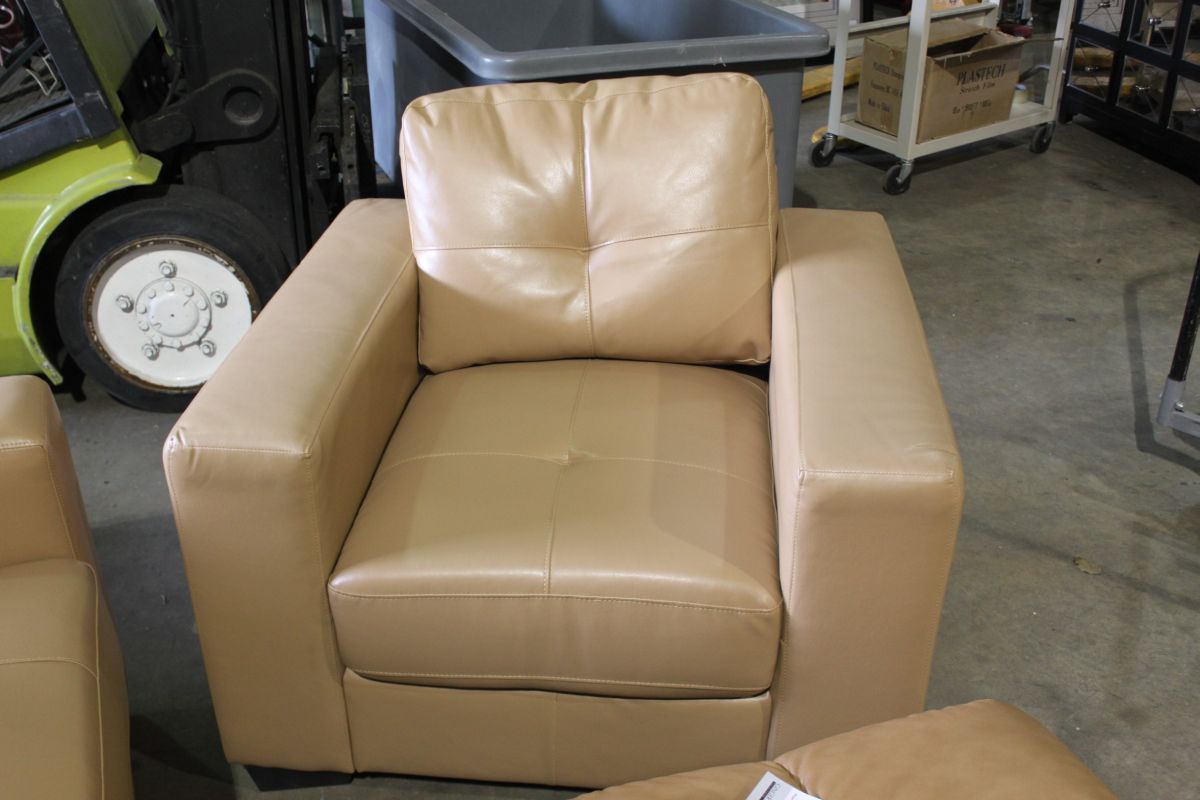 BEIGE LEATHER SOFA, LOVE SEAT AND CHAIR SET