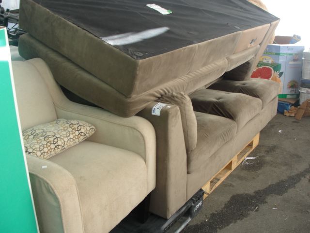 BEIGE MICROFIBRE SUEDE 2PC SECTIONAL SOFA AND A CREME COLORED ACCENT CHAIR
