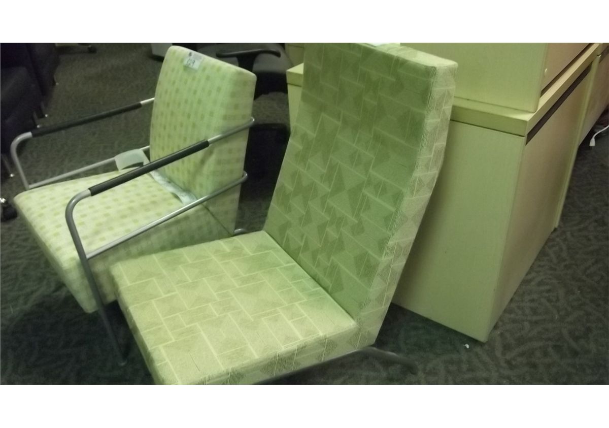 BEIGE PATTERNED ARMLESS RECEPTION CHAIR