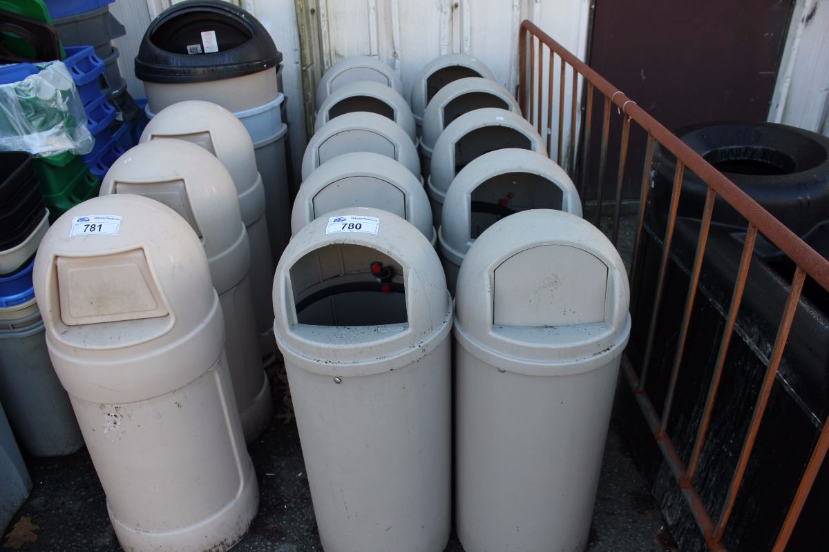 BEIGE PLASTIC OUTDOOR GARBAGE CANS