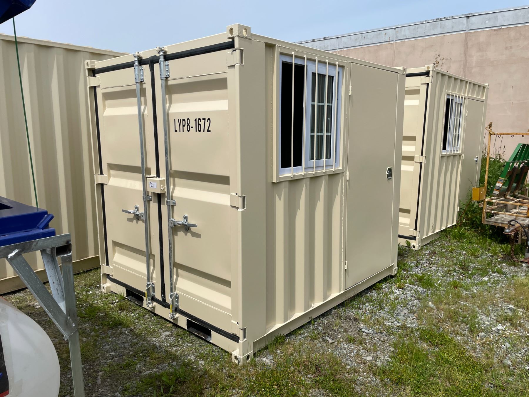 BEIGE PORTABLE OFFICE CONTAINER W78" X L98" X H89" WITH WINDOW AND LOCKING MAN DOOR