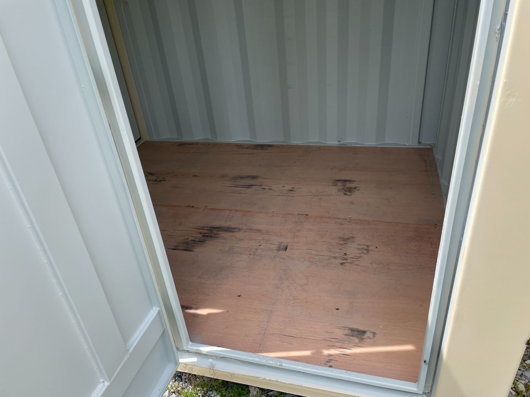 BEIGE PORTABLE OFFICE CONTAINER W78" X L98" X H89" WITH WINDOW AND LOCKING MAN DOOR APPROX WEIGHT 900 KGS