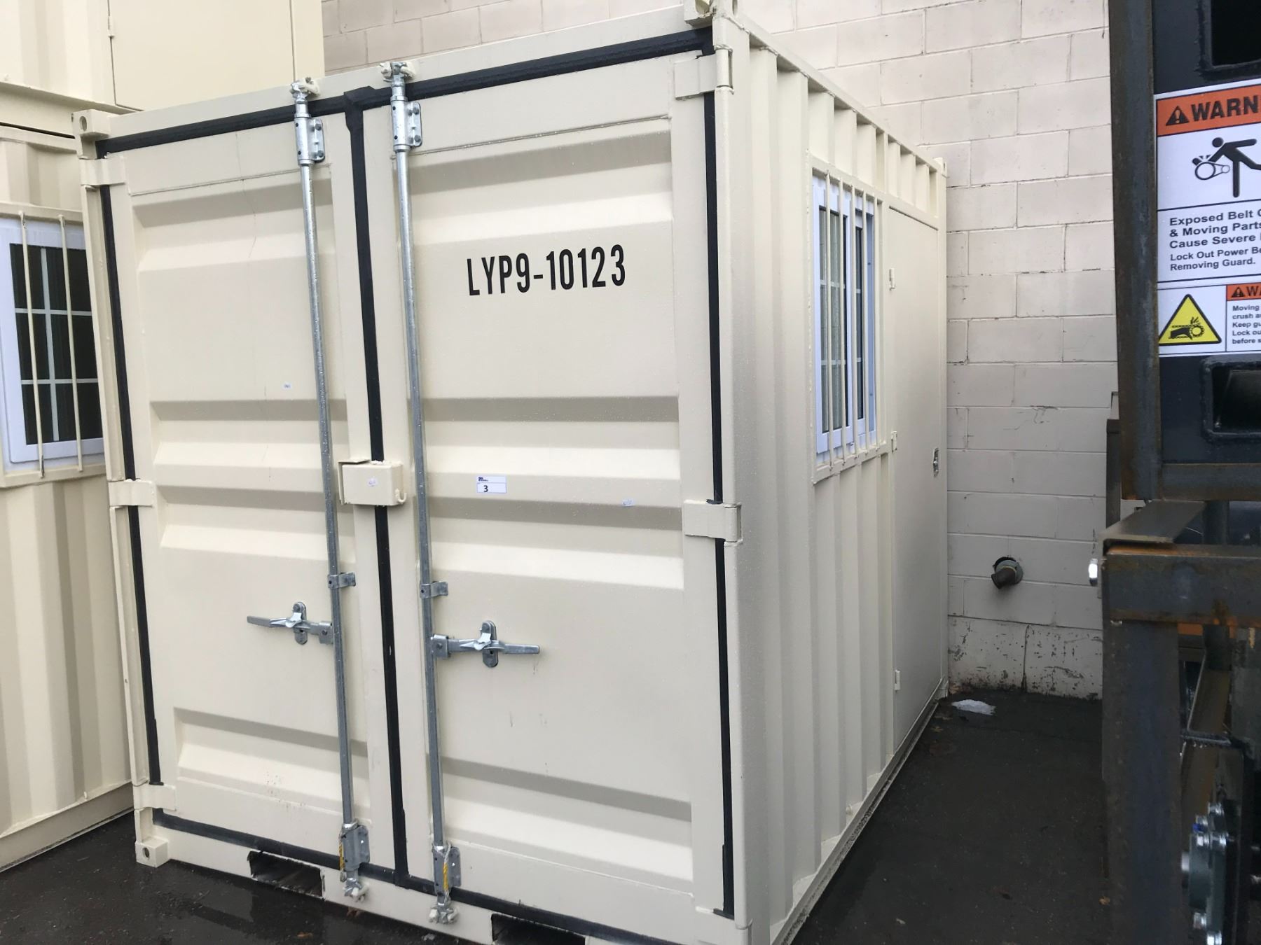 BEIGE PORTABLE OFFICE CONTAINER W87" X L108" X H99" WITH WINDOW AND LOCKING MAN DOOR
