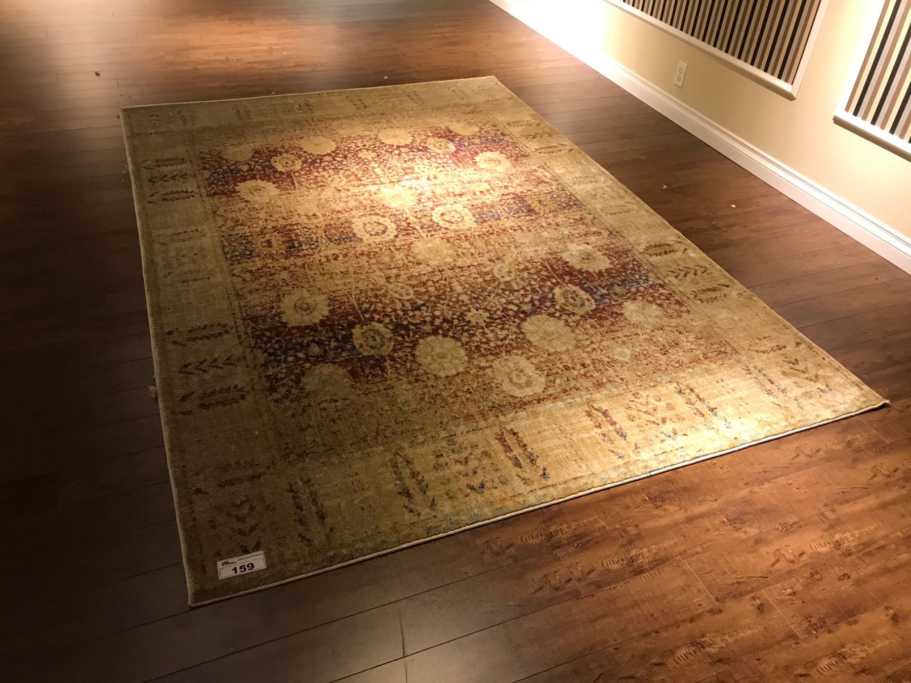BEIGE / RED PATTERNED AREA RUG 78 X 111 INCHES