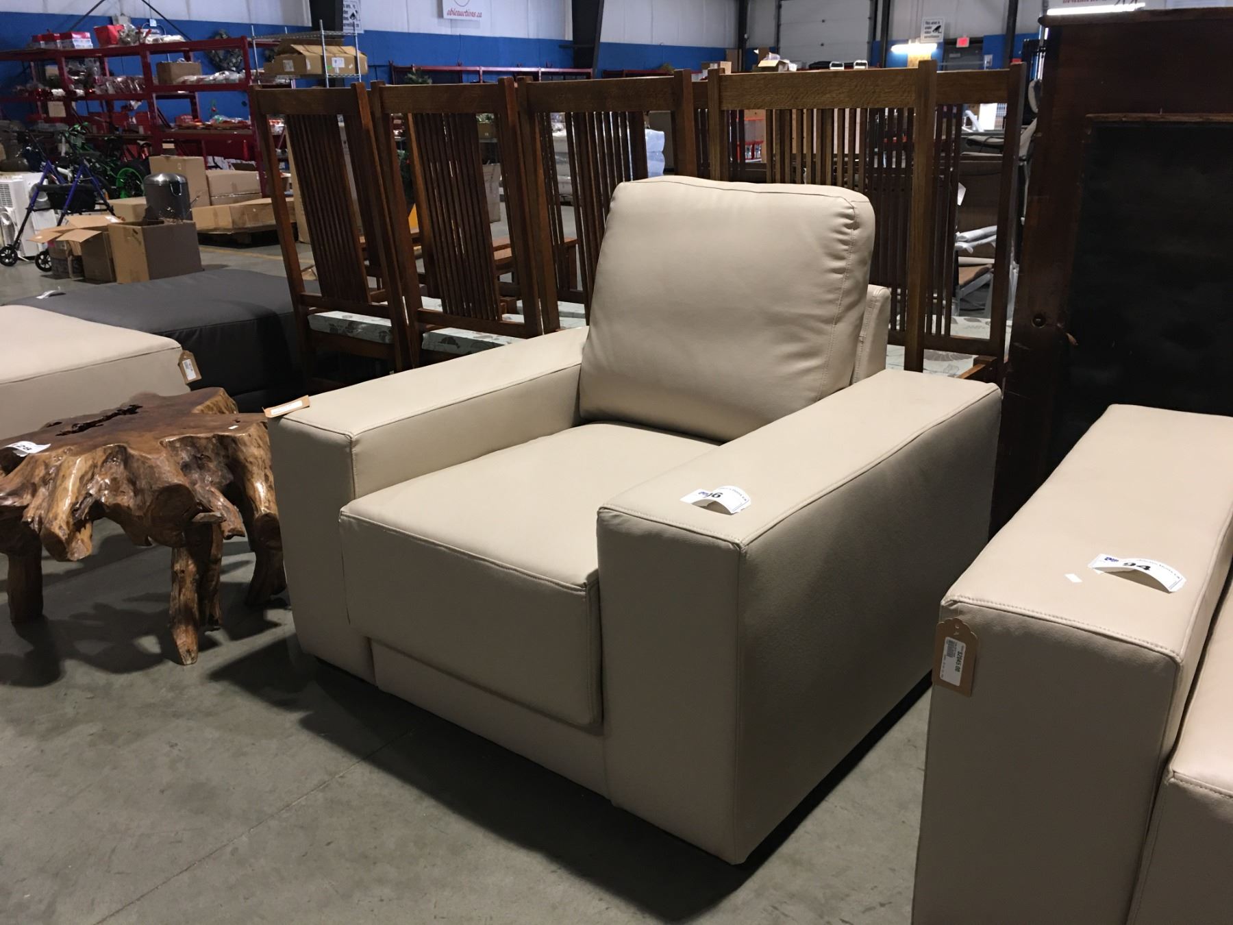 BEIGE SYNTHETIC LEATHER CHAIR - MSRP $1070