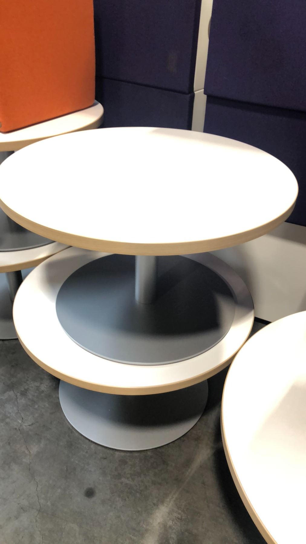 BEIGE TOP/GREY METAL BASED 24" ROUND COFFEE TABLE
