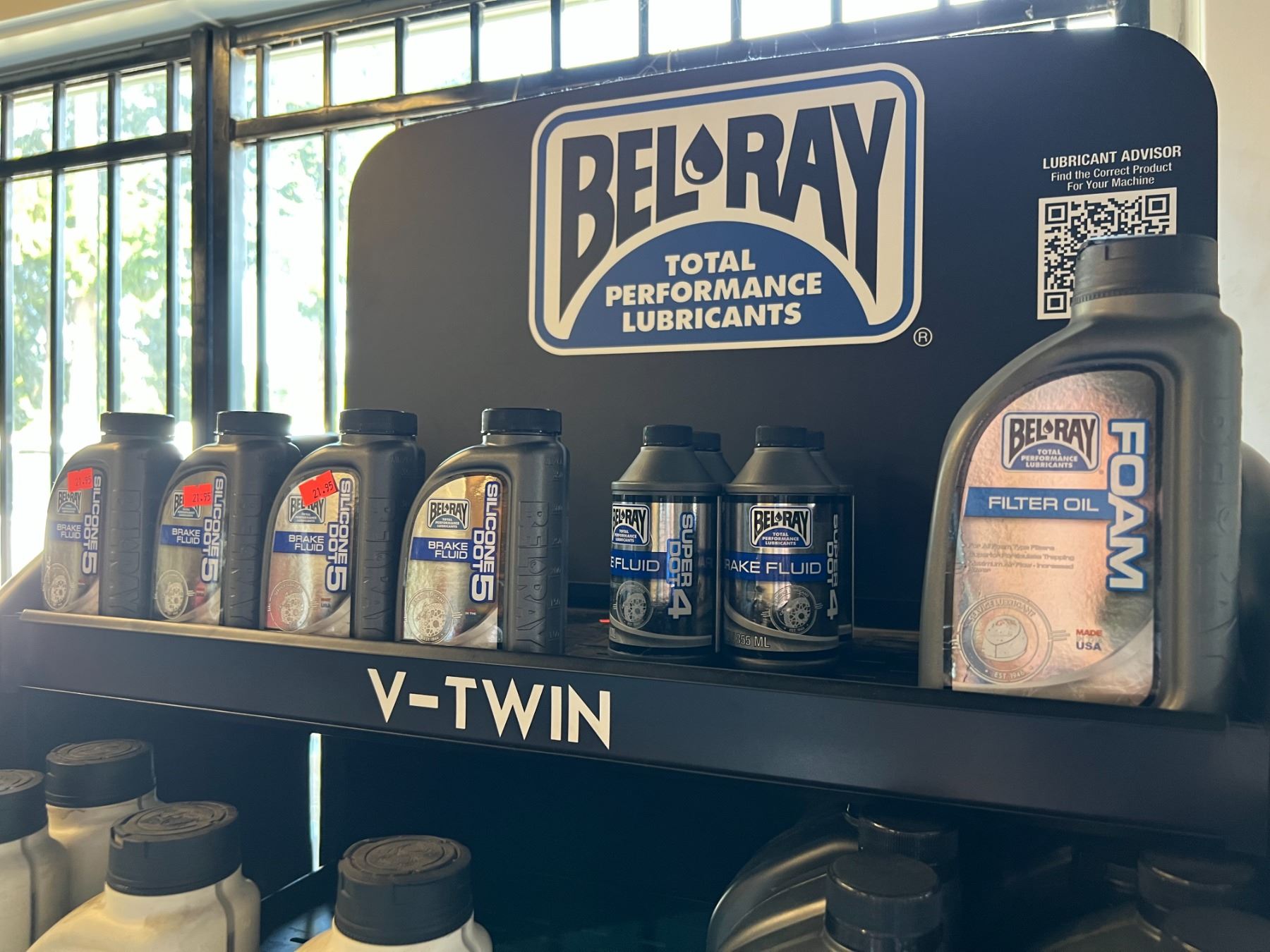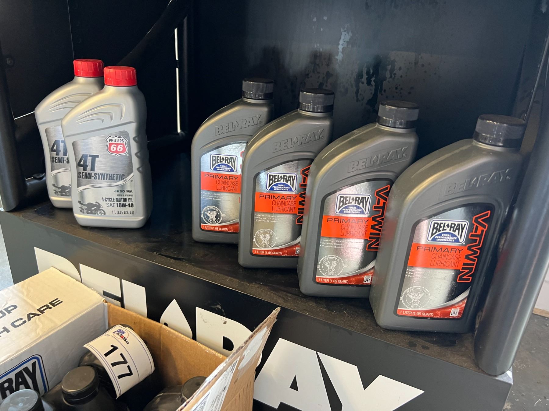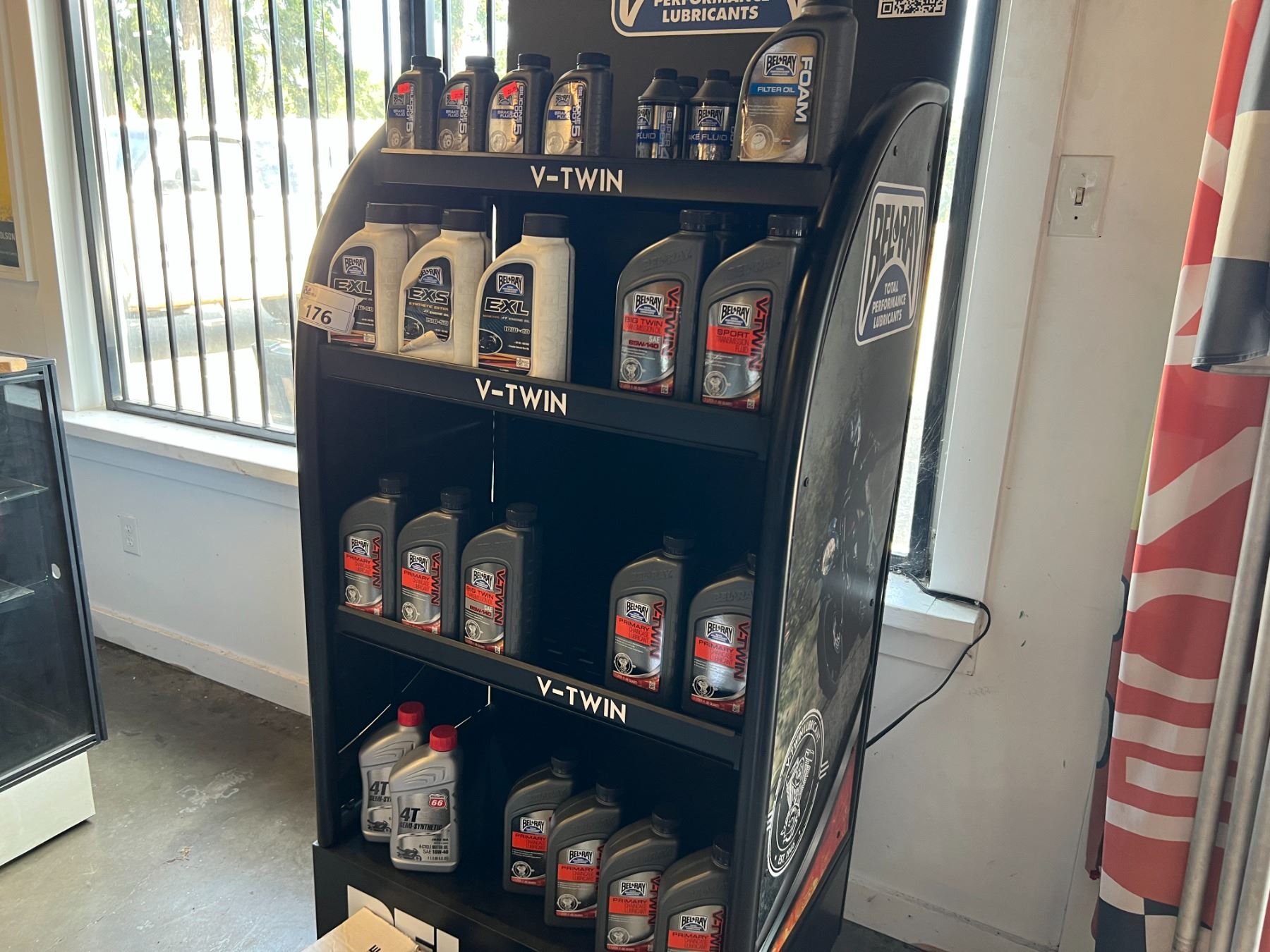 BEL RAY STORE DISPLAY INCLUDES CONTENTS (APROX 32 QUARTS OF ASSTD ENGINE/GEAR OIL, 8 CONTAINERS .4 & .5 BRAKE FLUID)