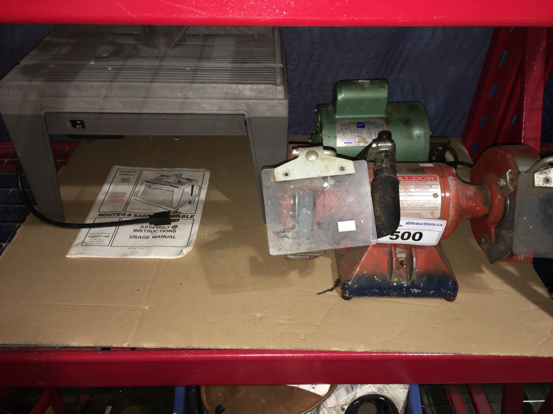 BELDOR BENCH GRINDER, DOERR ELECTRIC MOTOR & ROUTER TABLE