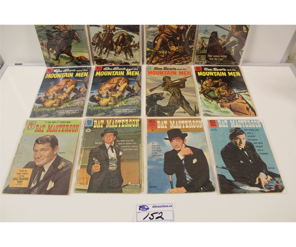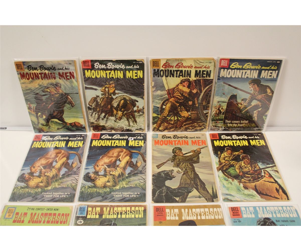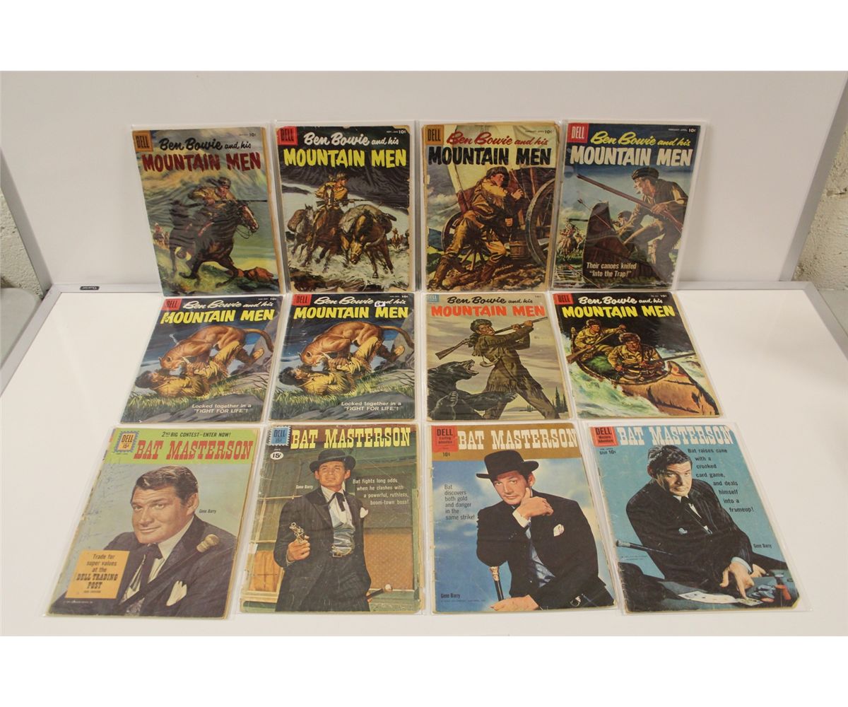 BEN BOWIE AND HIS MOUNTAIN MEN #7-657 (1956) 8 BOOKS IN LOW GRADE AVERAGE PLUS BAT MASTERSON  #2-9 (1960) 4 BOOKS IN LOW GRADE. 12 WESTERN DELL COMICS TOTAL.