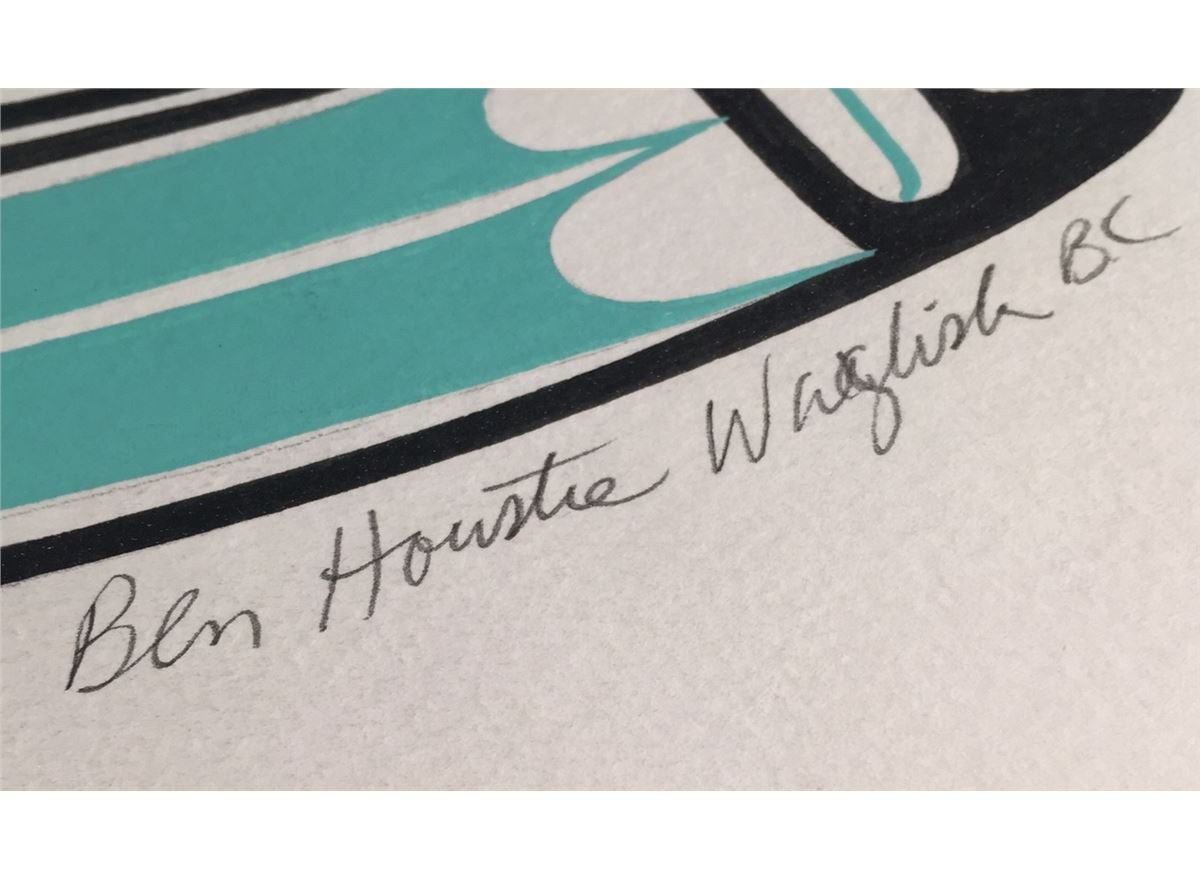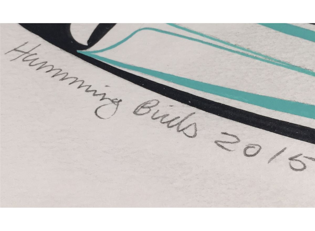 BEN HOUSTIE, "HUMMING BIRDS" ACRYLIC ON PAPER 20" X 28"