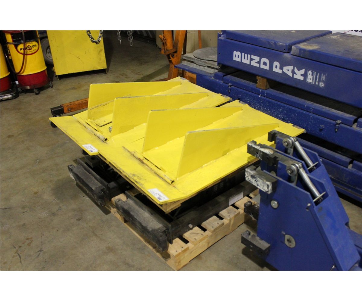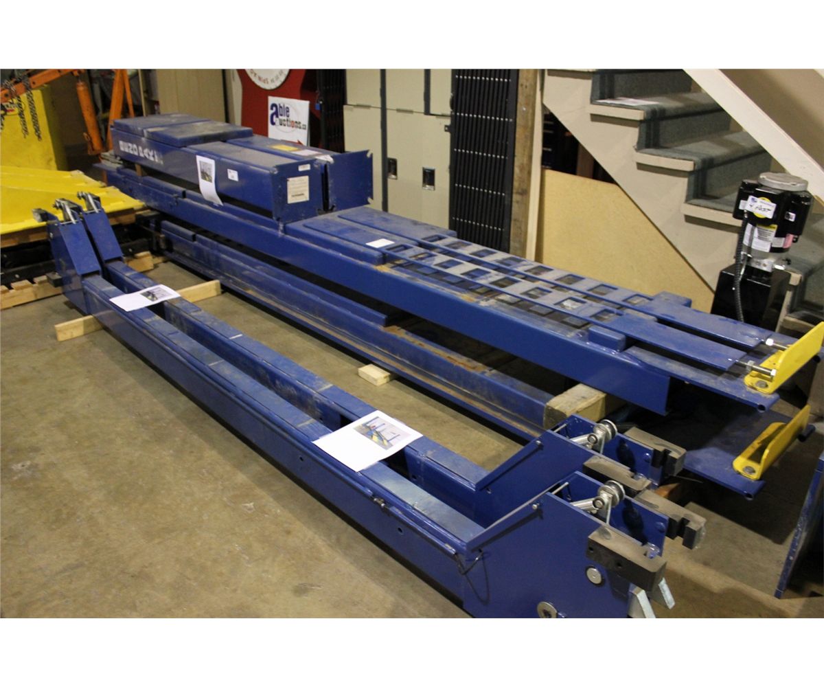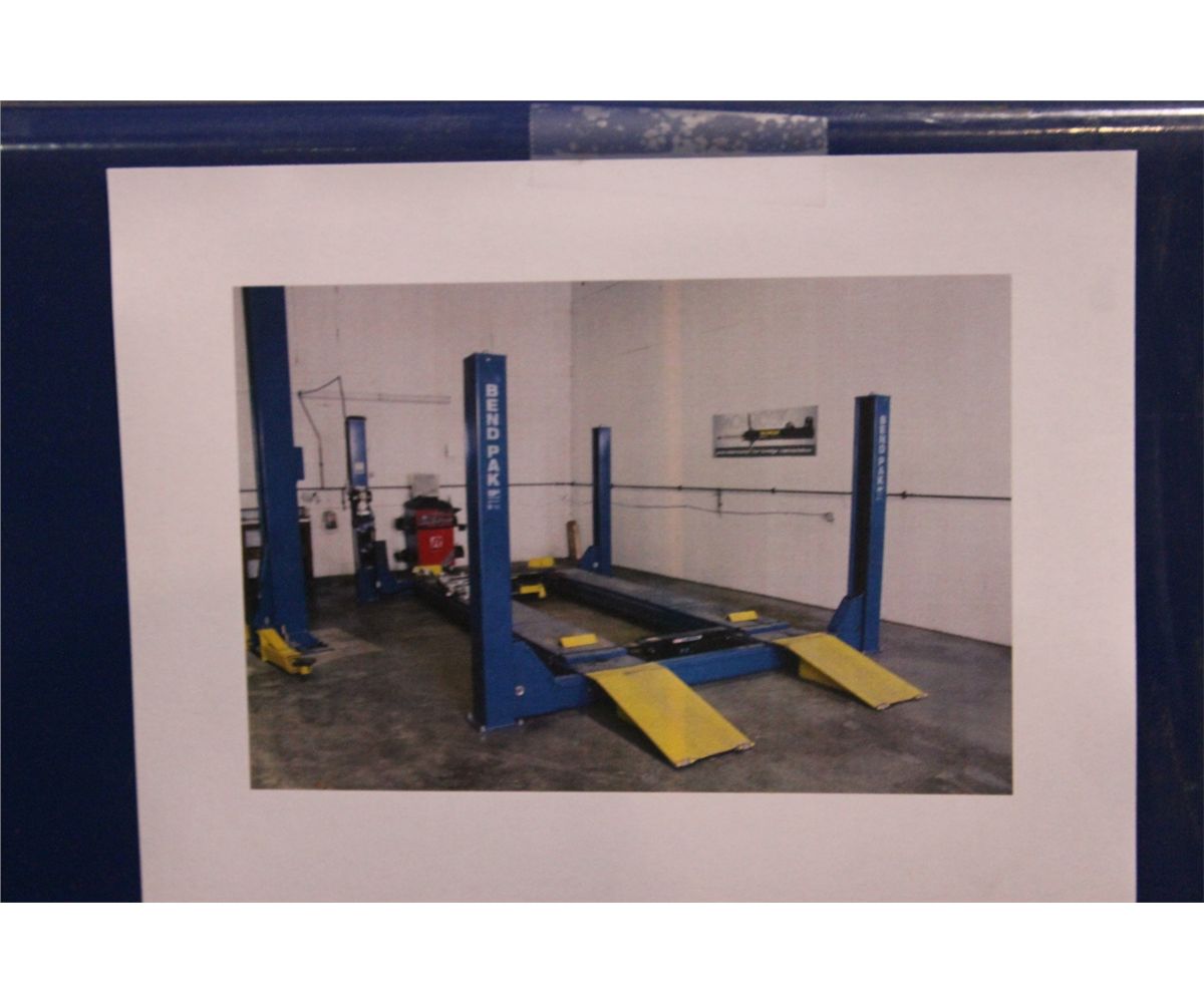BENDPAK 18,000LB FOUR POST HOIST WITH 2- 9000LB CAPACITY ROLLING BRIDGE JACKS AND RAMPS