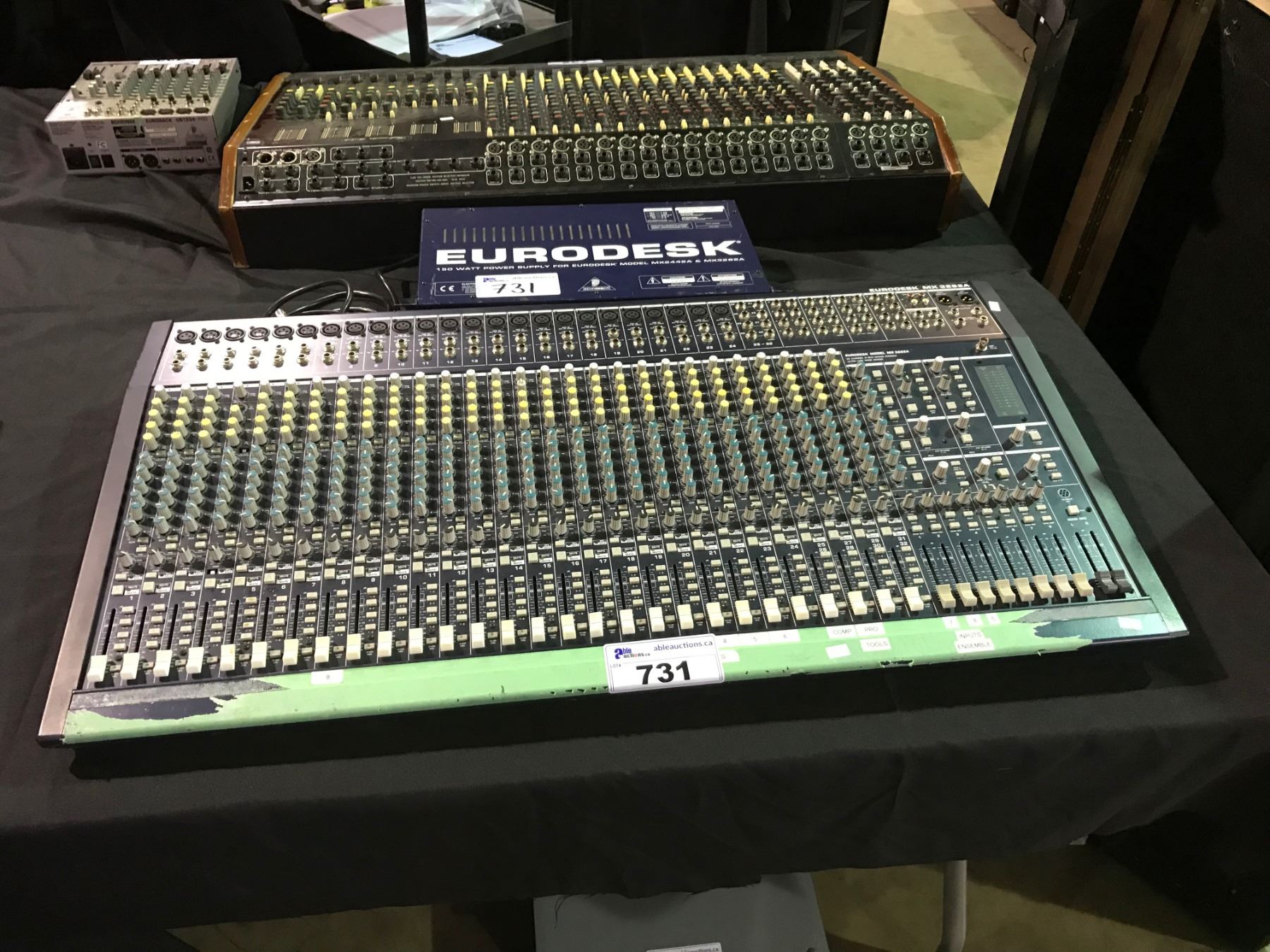 BEREHRINGER EURODESK MX 3282A 32 CHANNEL MIXING BOARD WITH 150 WATT POWER SUPPLY