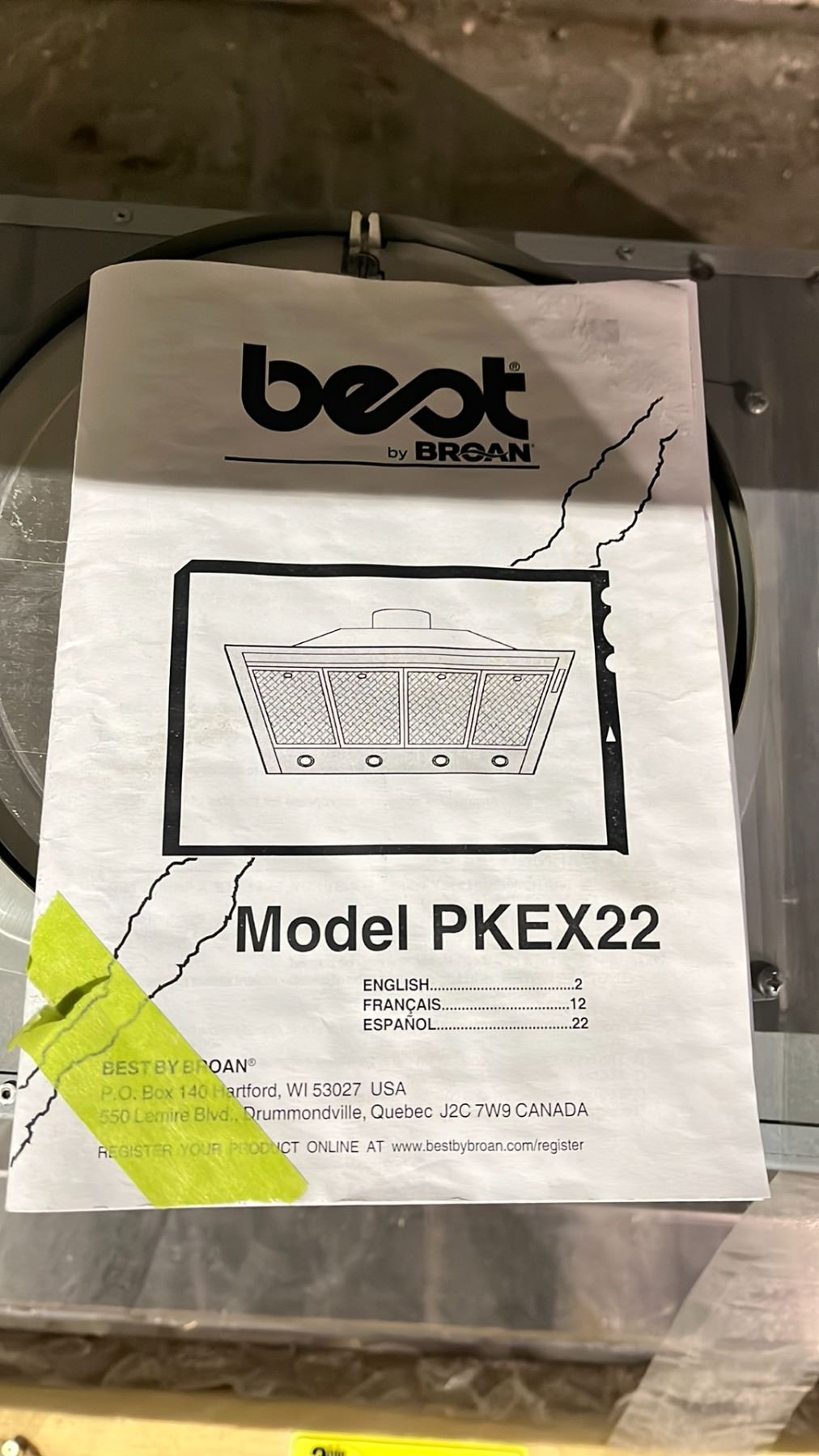 BEST BY BROAN MODEL PKEX22 KITCHEN RANGE HOOD FAN