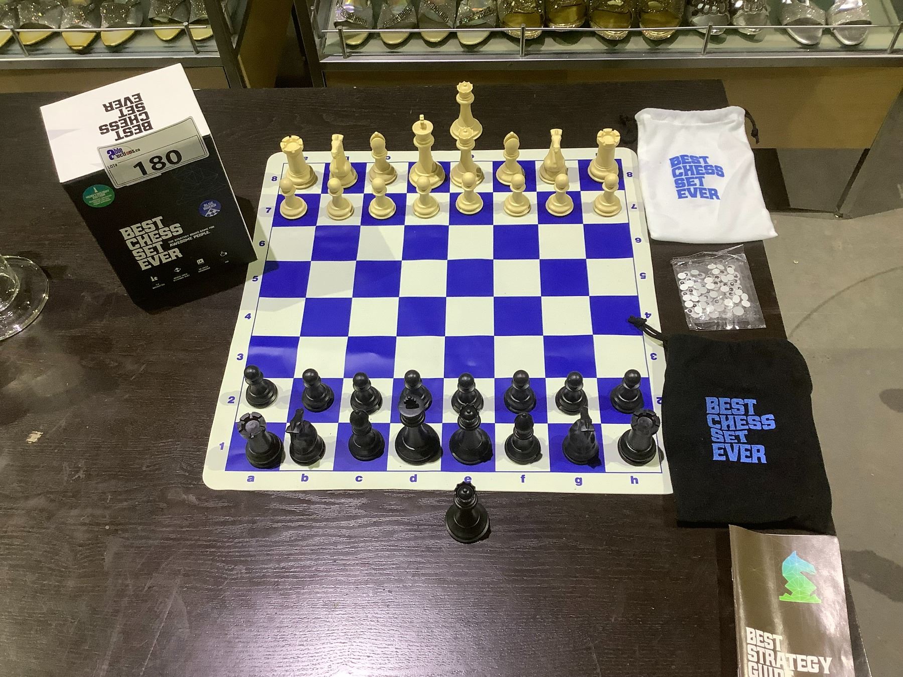 BEST CHESS SET EVER HEAVY WEIGHT EDITION, SILICON BLUE BOARD 20X20", 4X WEIGHTED PIECES, 30 PAGE