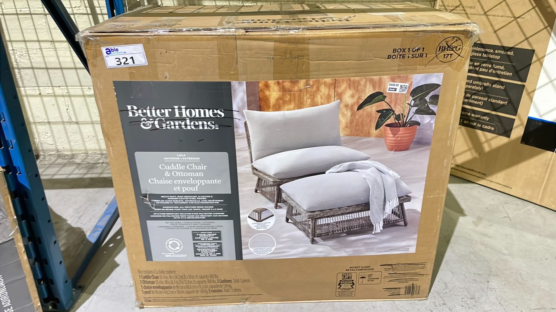 BETTER HOMES & GARDENS LOLA OUTDOOR CUDDLE CHAIR & OTTOMAN (MAY BE MISSING PARTS & PIECES)
