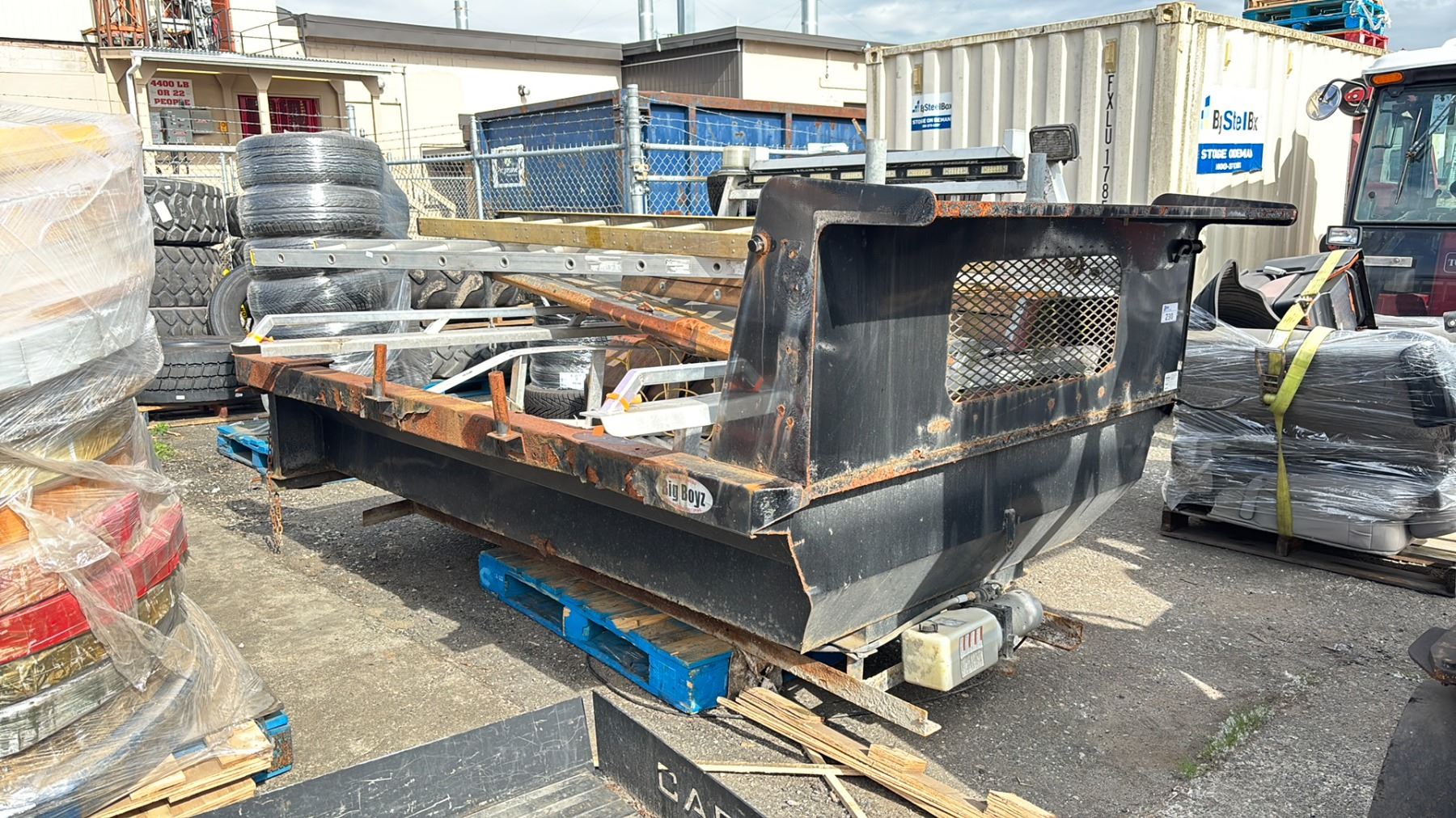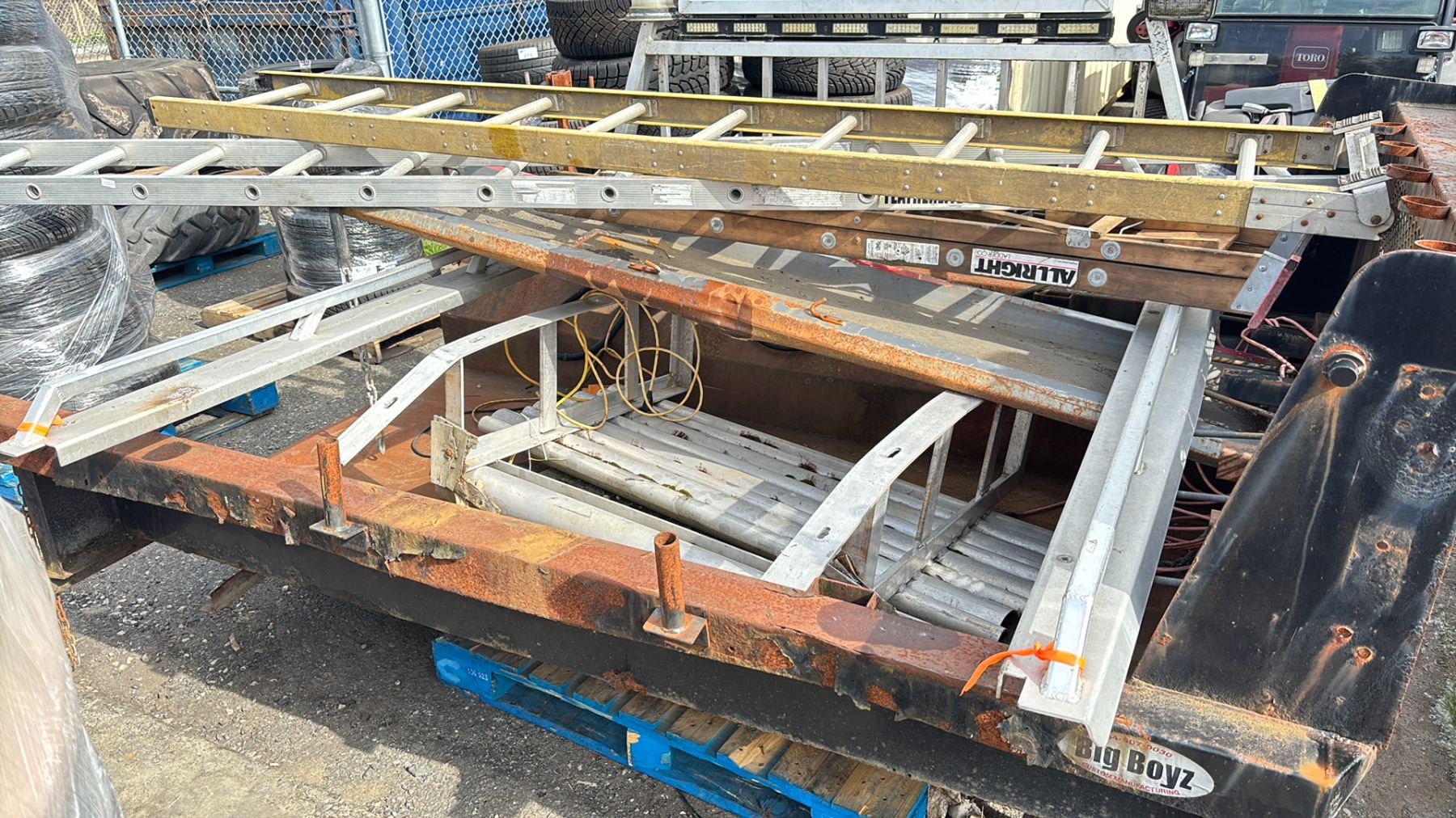 BIG BOYZ 4' X 8' DUMPER WITH CONTENTS INCLUDING 2 ALUMINUM LADDERS & A WOODEN LADDER