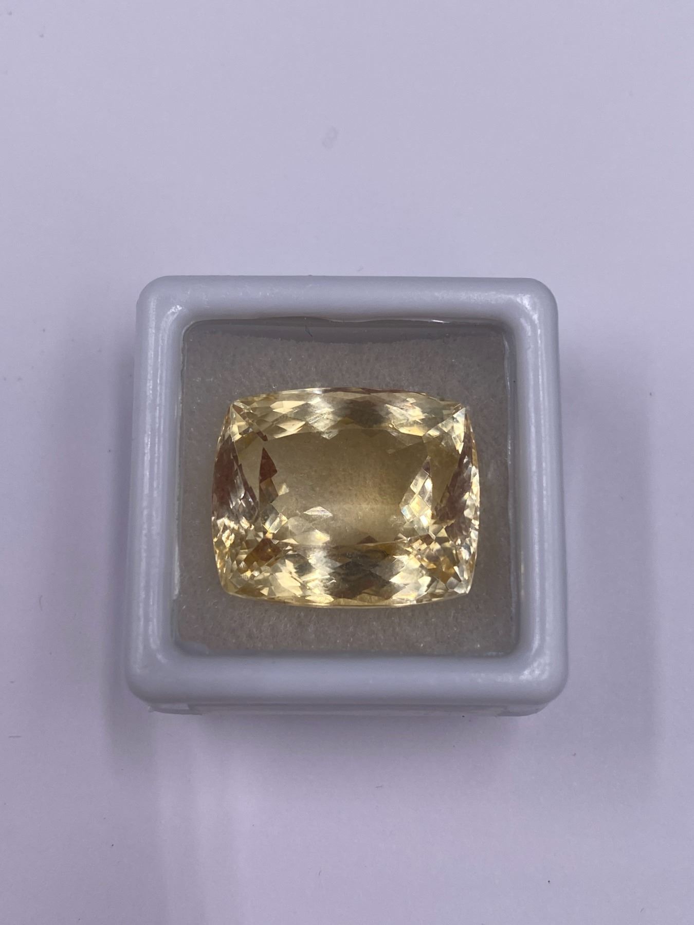 BIG CITRINE 27.67 CT (19.21 X 16.08 X 12.43 MM) CUSHION MASTER CUT, LOUPE CLEAN, BRAZIL
