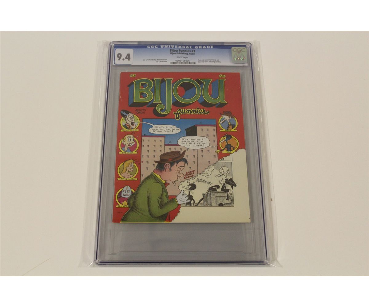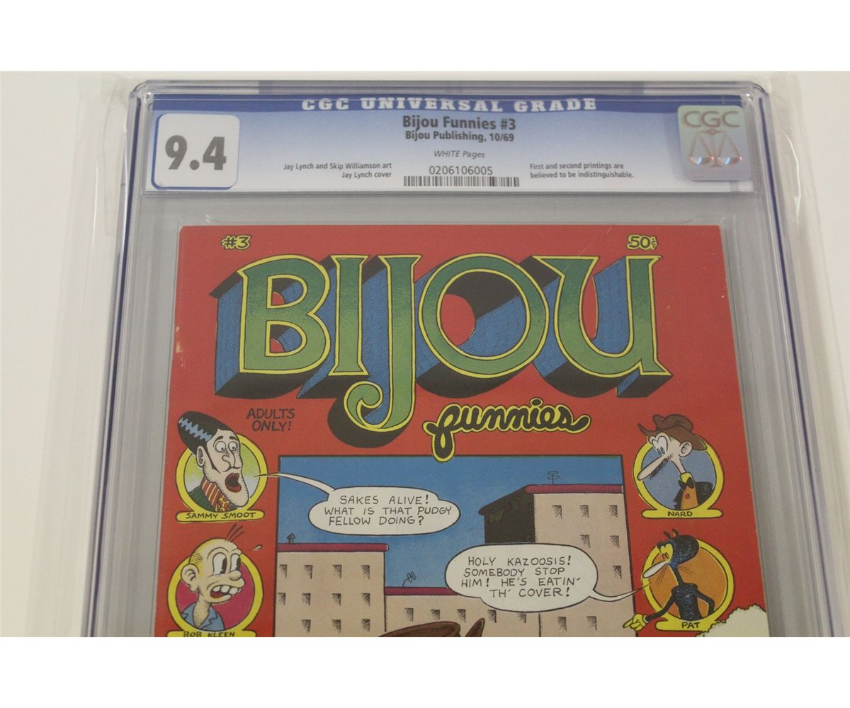 BIJOU FUNNIES #3 CGC 9.4 (NM) (1ST PRINT) (1969) CLASSIC SILVER AGE UNDERGROUND, JAY LYNCH & SKIP WILLIAMSON ART! WHITE PAGES, ONLY CGC 9.4 GRADED COPY ON THE PLANET!