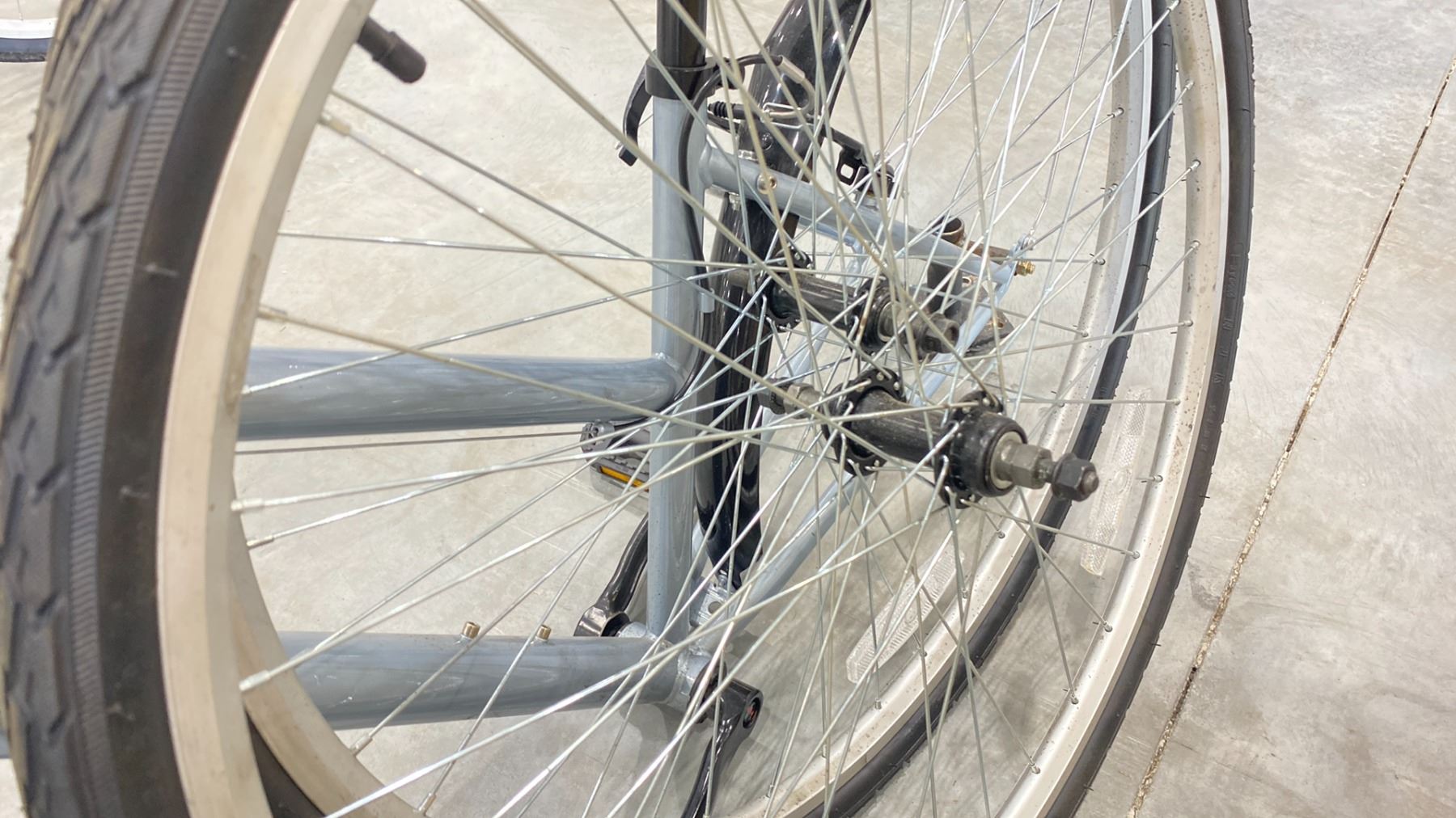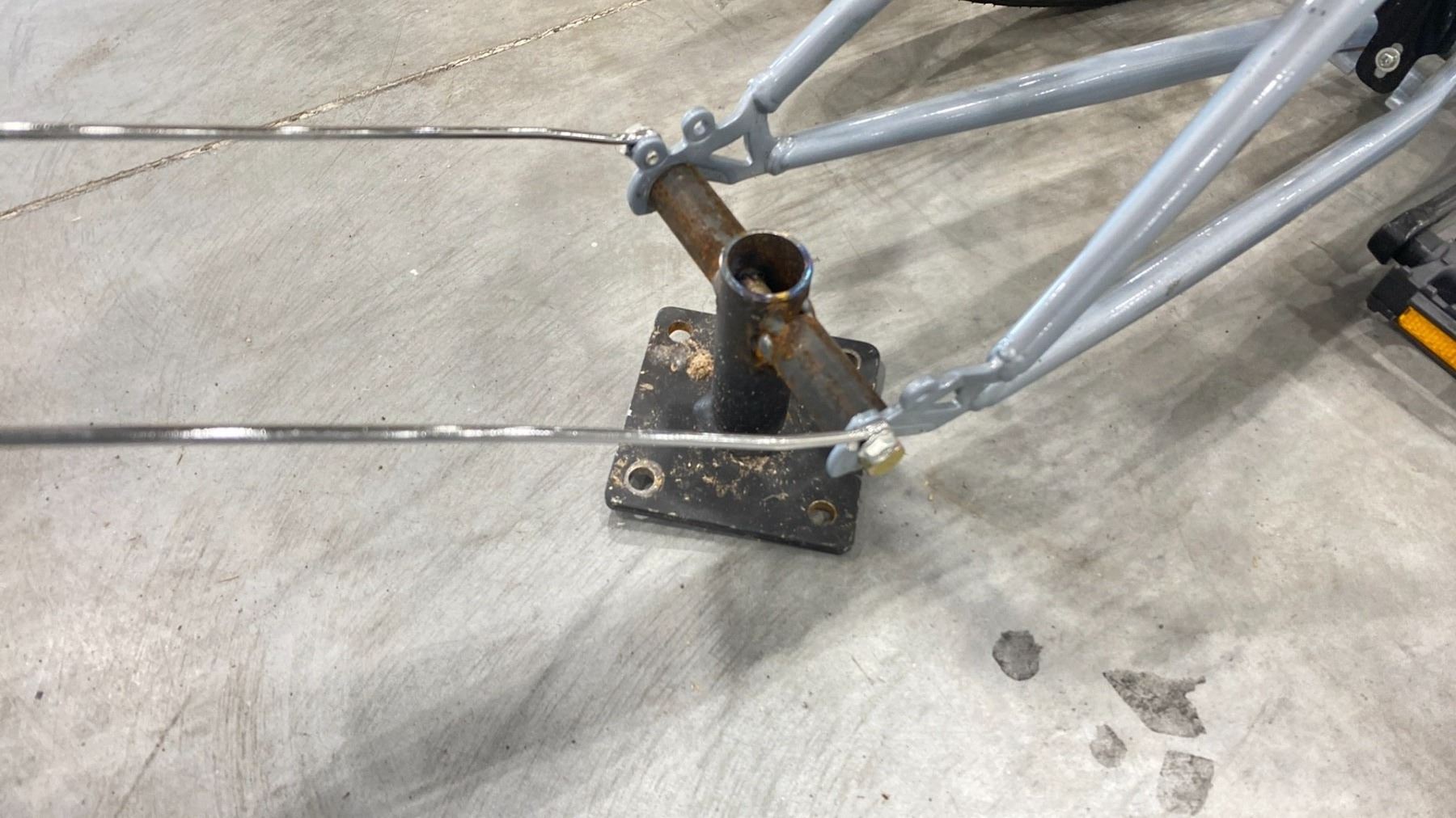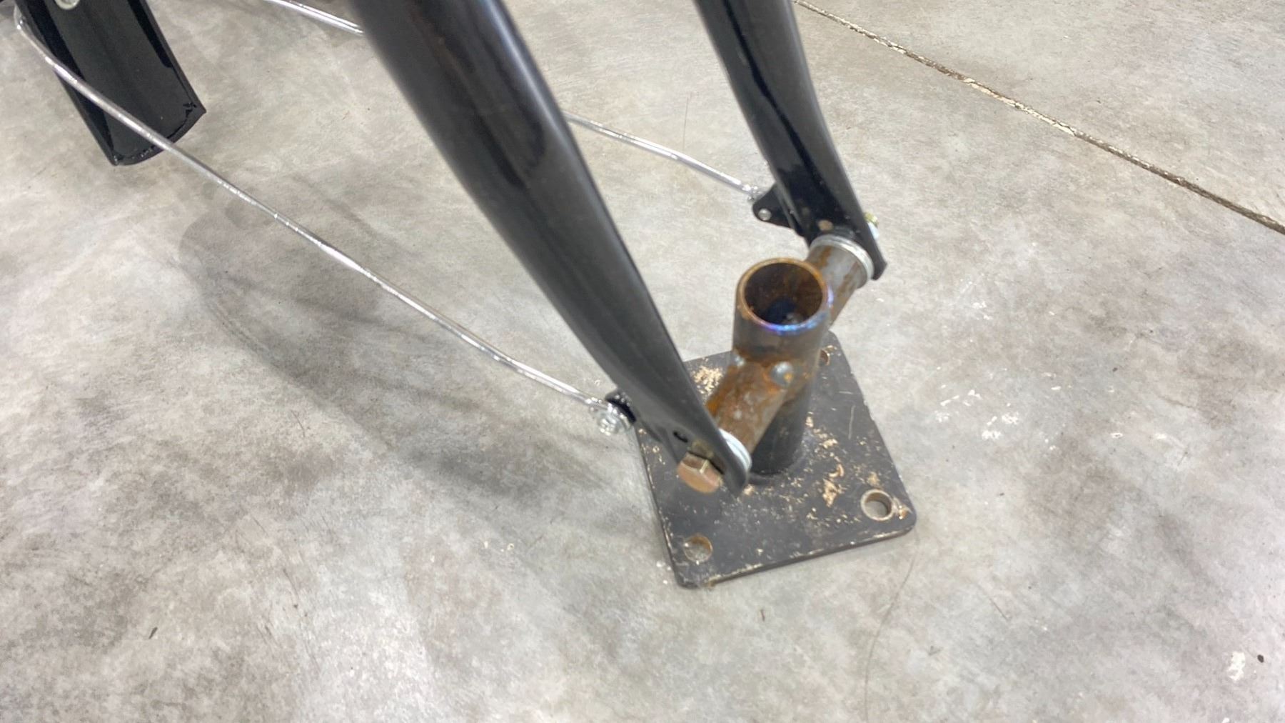 BIKE ON STAND WITH 2 FRONT WHEELS (NO REAR WHEEL, NO SPROCKET, NO CHAIN)