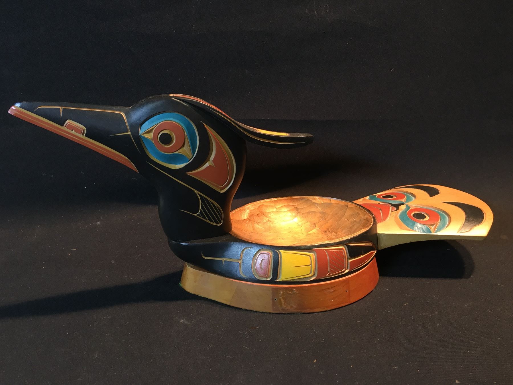 BILL WILSON, HAND CARVED AND PAINTED LOON BOWL, 22'' LONG