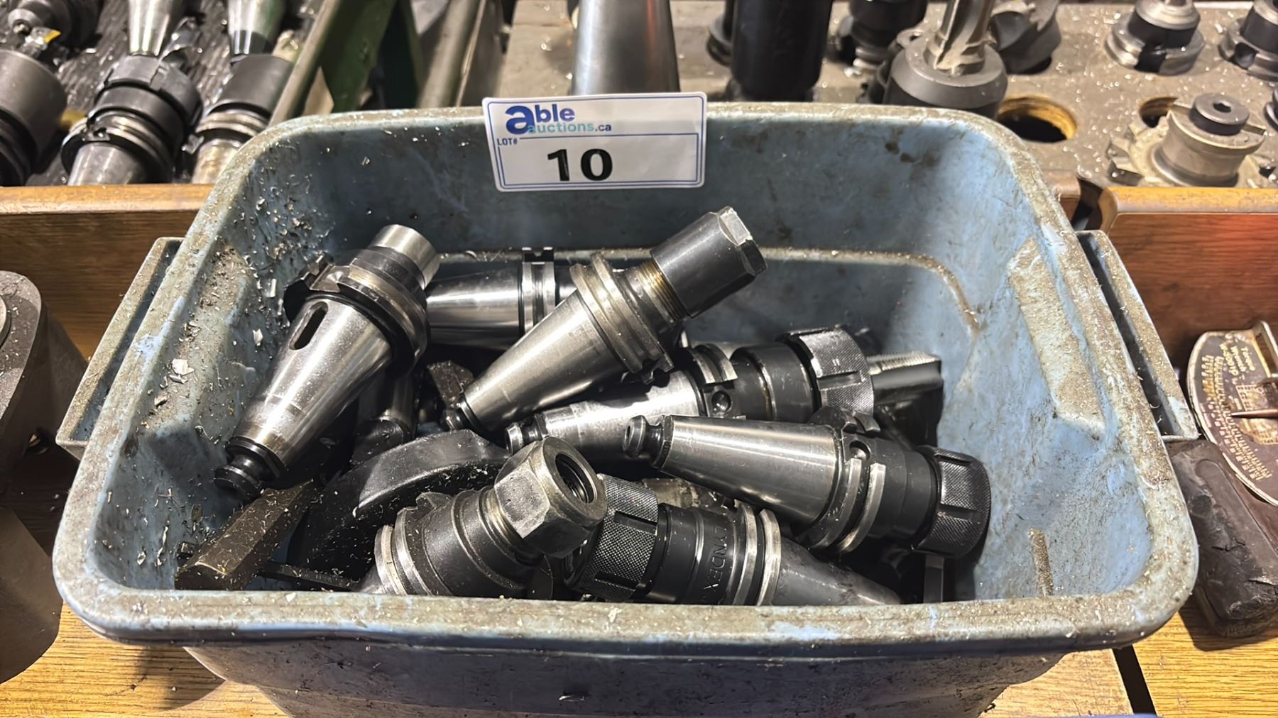 BIN OF 10 ASSORTED COMMERCIAL INDUSTRIAL CNC MACHINE TOOLING / HEADS *BIN INCLUDED*