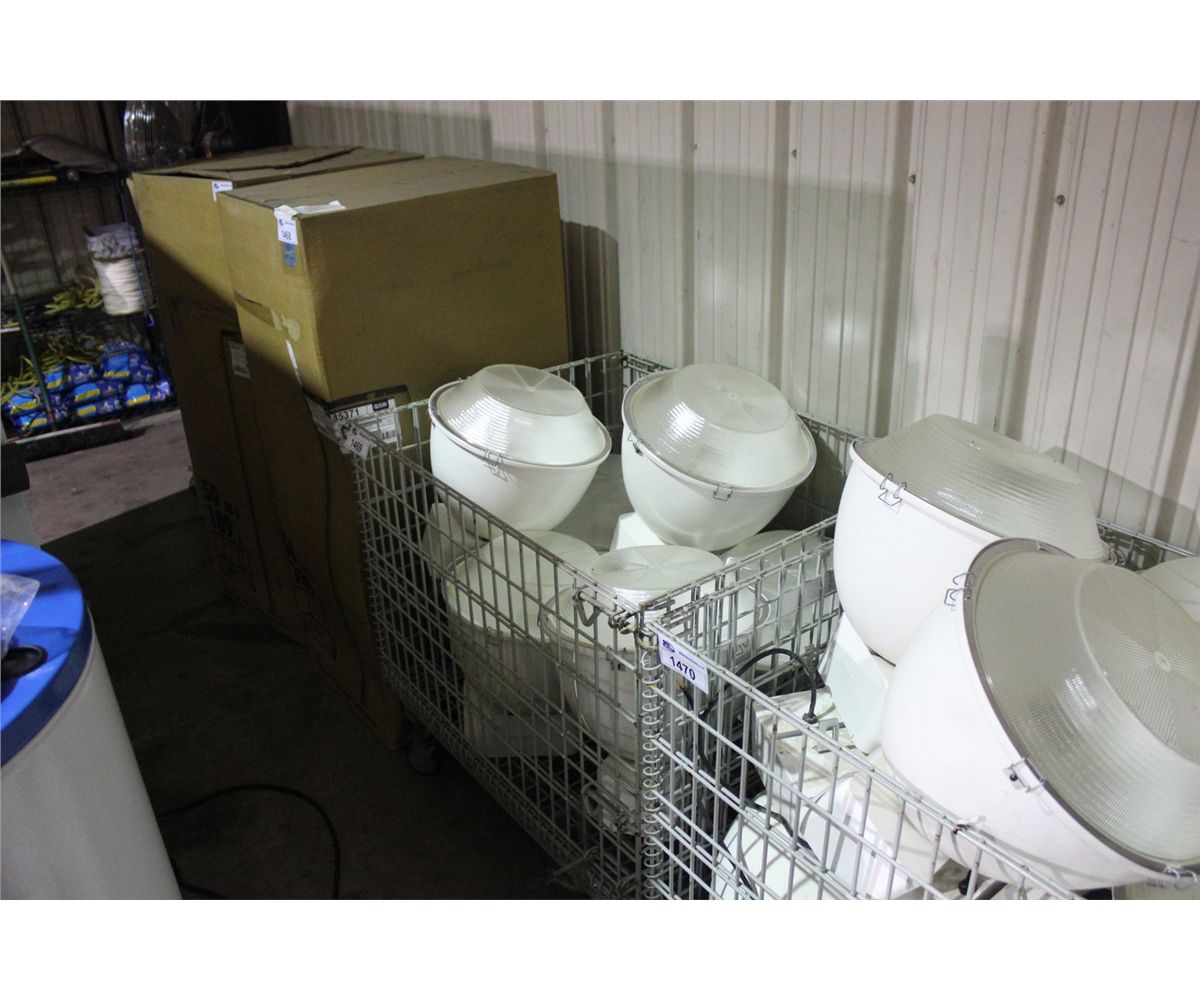 BIN OF 120 VOLT HANGING SHOP LIGHTS (BIN NOT INCLUDED)