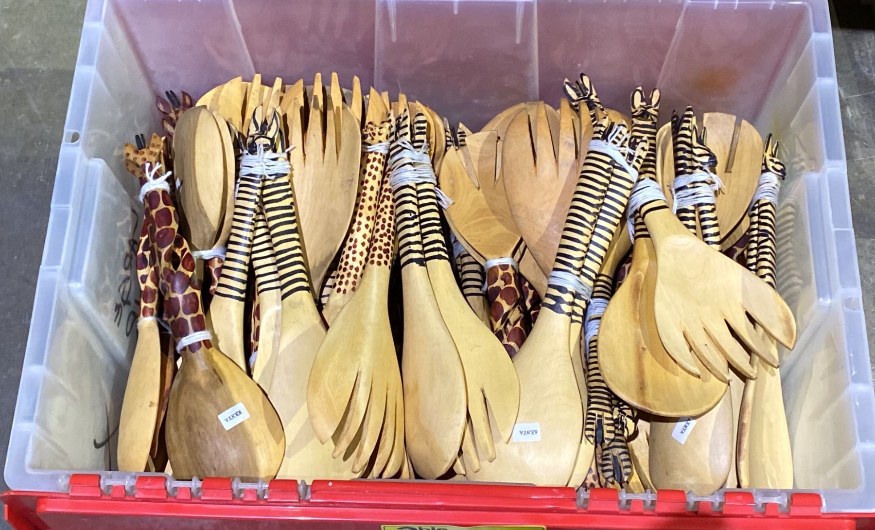 BIN OF AFRICAN CARVED SALAD SERVERS