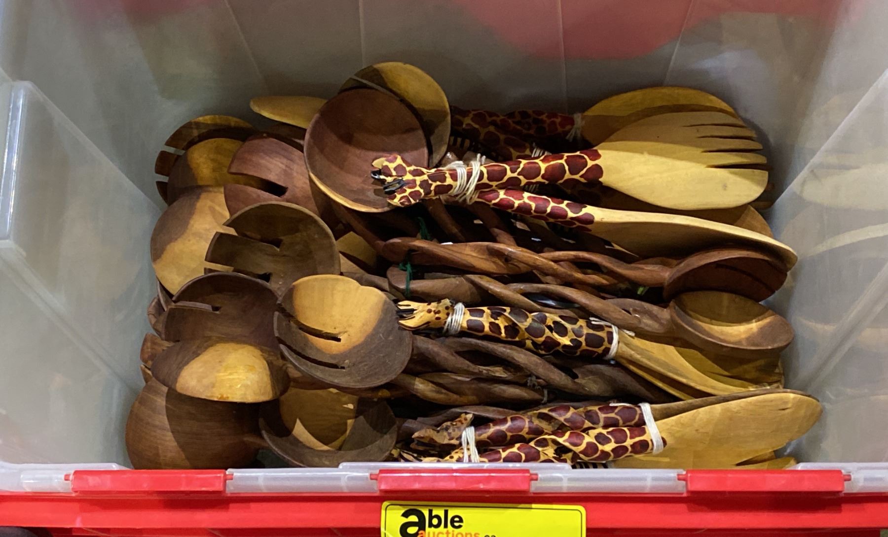 BIN OF AFRICAN CARVED SALAD SERVERS