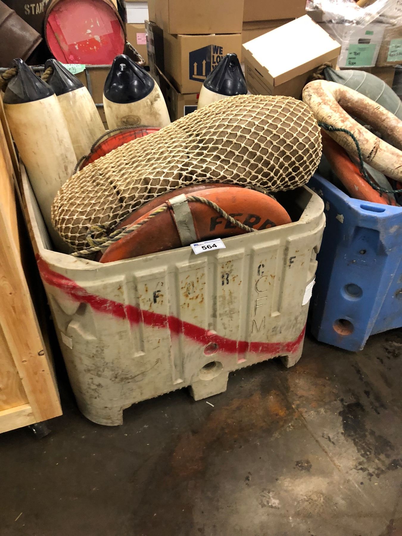 BIN OF ASSORTED BUOYS & MARINE PROPS