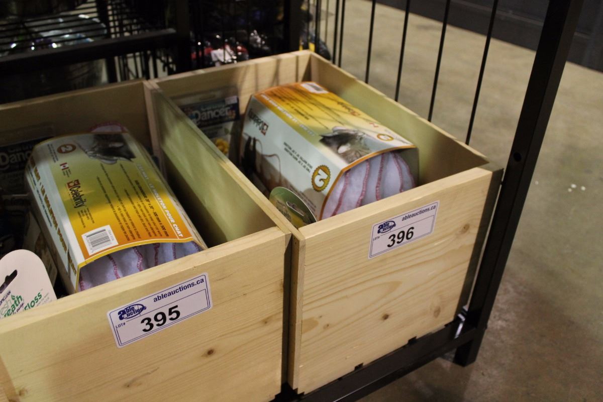 BIN OF ASSORTED CAT TOYS, FOOD, MAT, GROOMING SUPPLIES