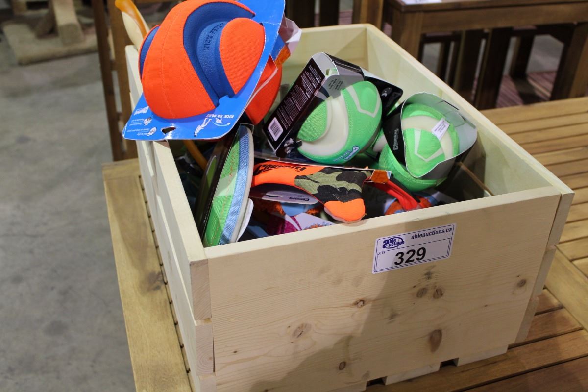 BIN OF ASSORTED CHUCK-IT DOG TOYS