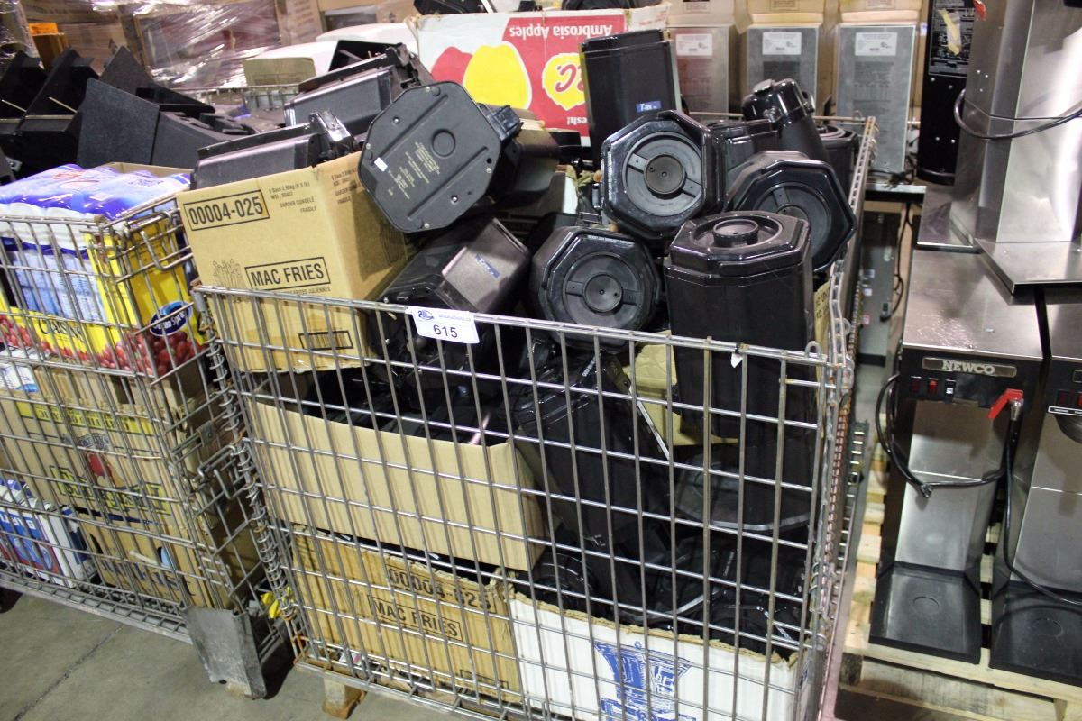 BIN OF ASSORTED COFFEE CARAFES & PARTS (BIN NOT INCLUDED)