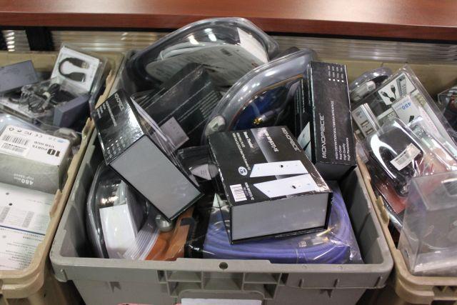 BIN OF ASSORTED COMPUTER STORE INVENTORY