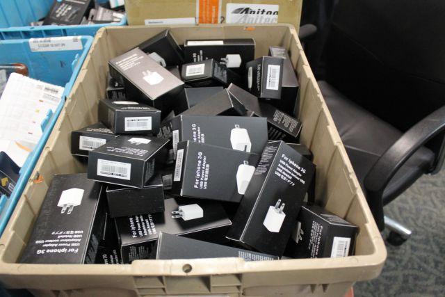 BIN OF ASSORTED COMPUTER STORE INVENTORY