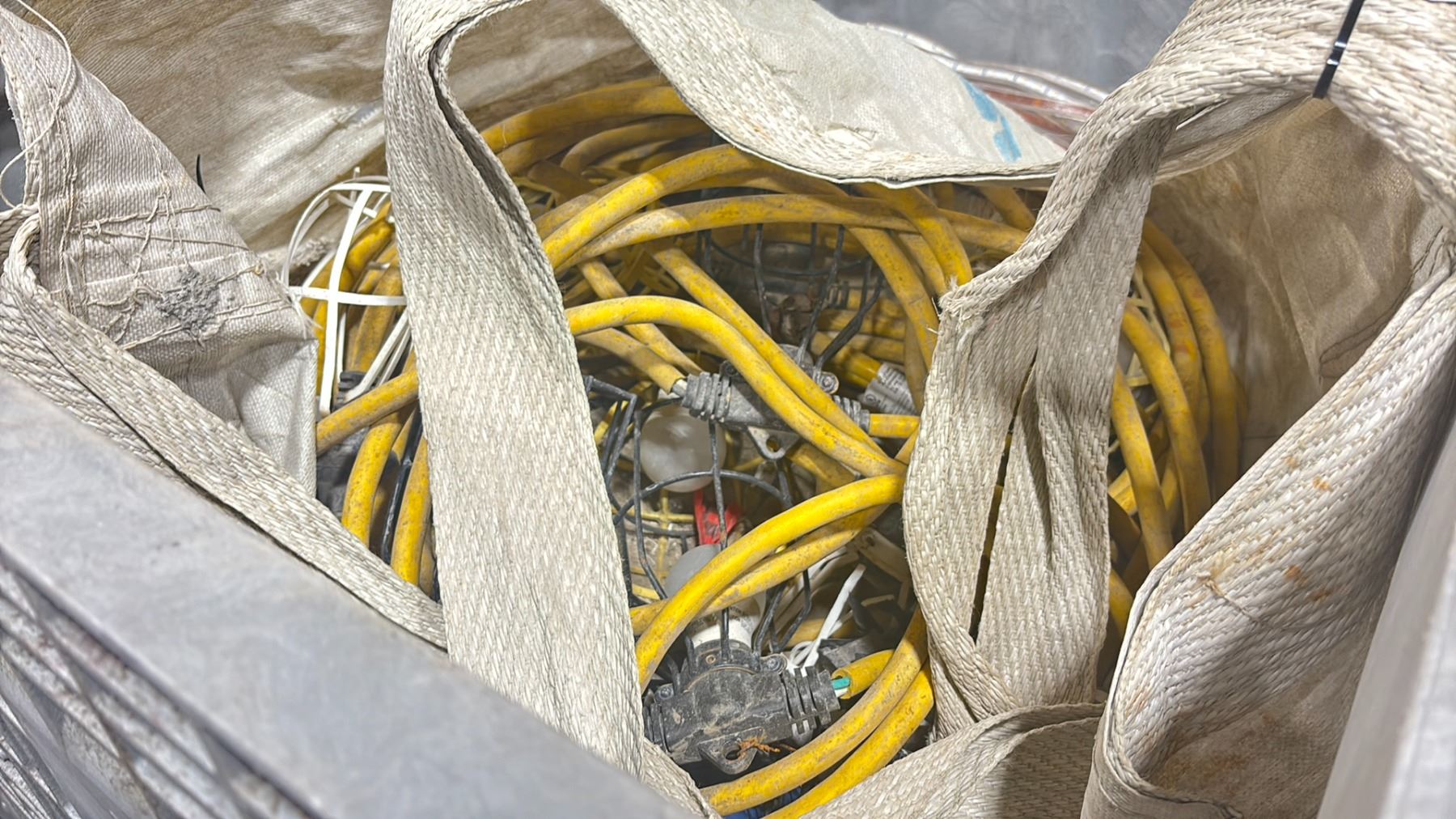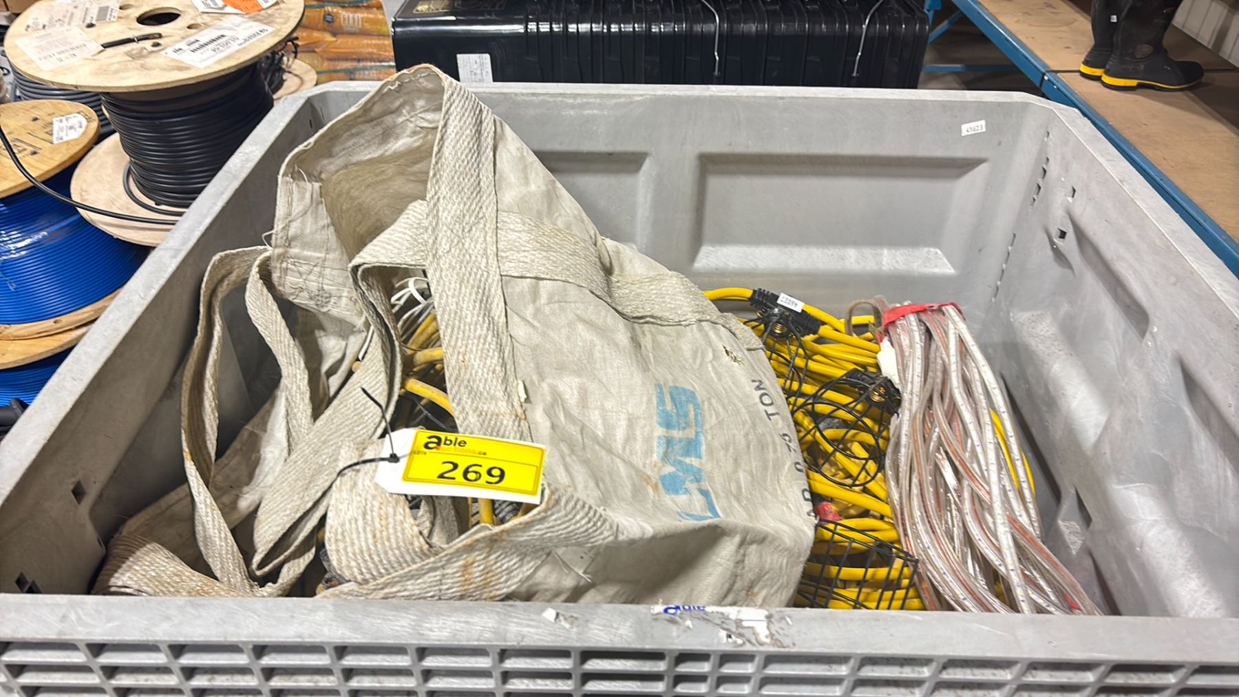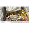 BIN OF ASSORTED CONSTRUCTION WORK LIGHTS & ELECTRICAL CORDS *BIN NOT INCLUDED*