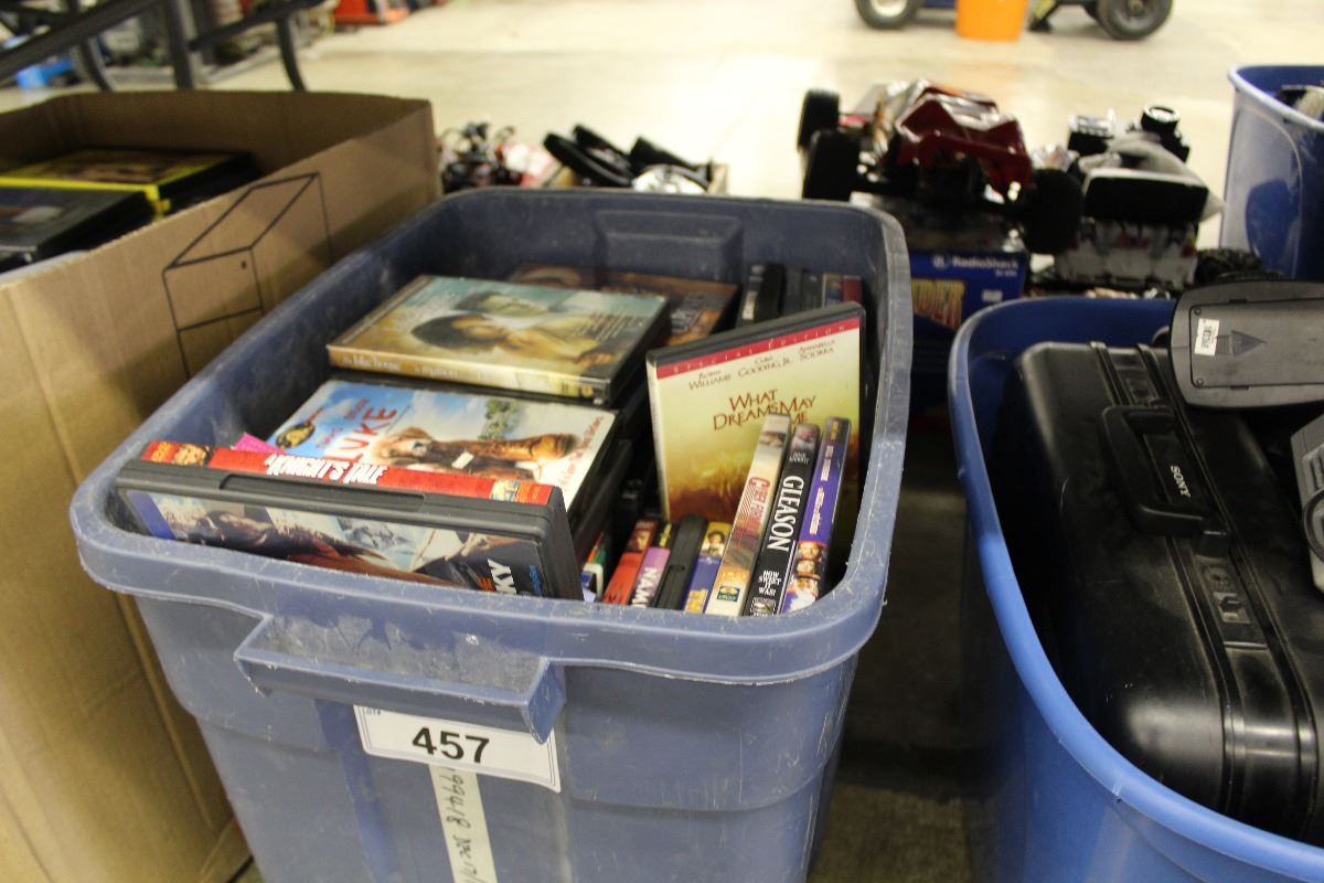 BIN OF ASSORTED DVDS