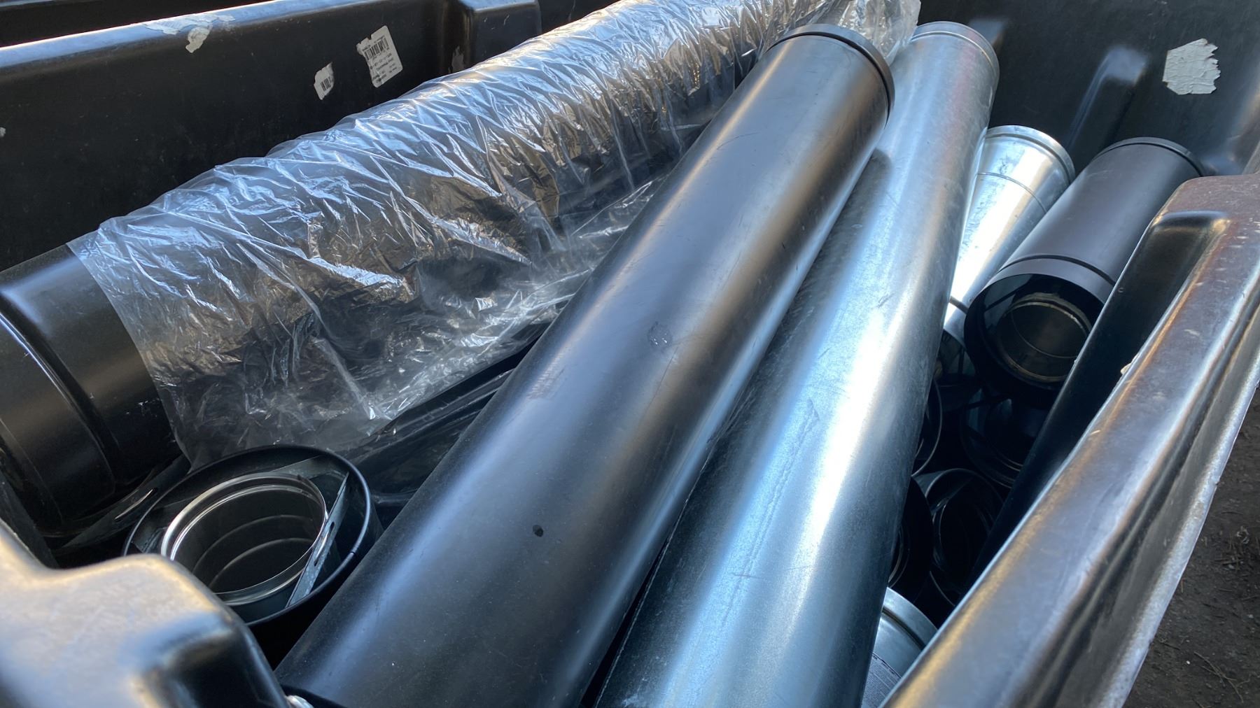 BIN OF ASSORTED FIREPLACE VENTILATION PIPE *BIN NOT INCLUDED*