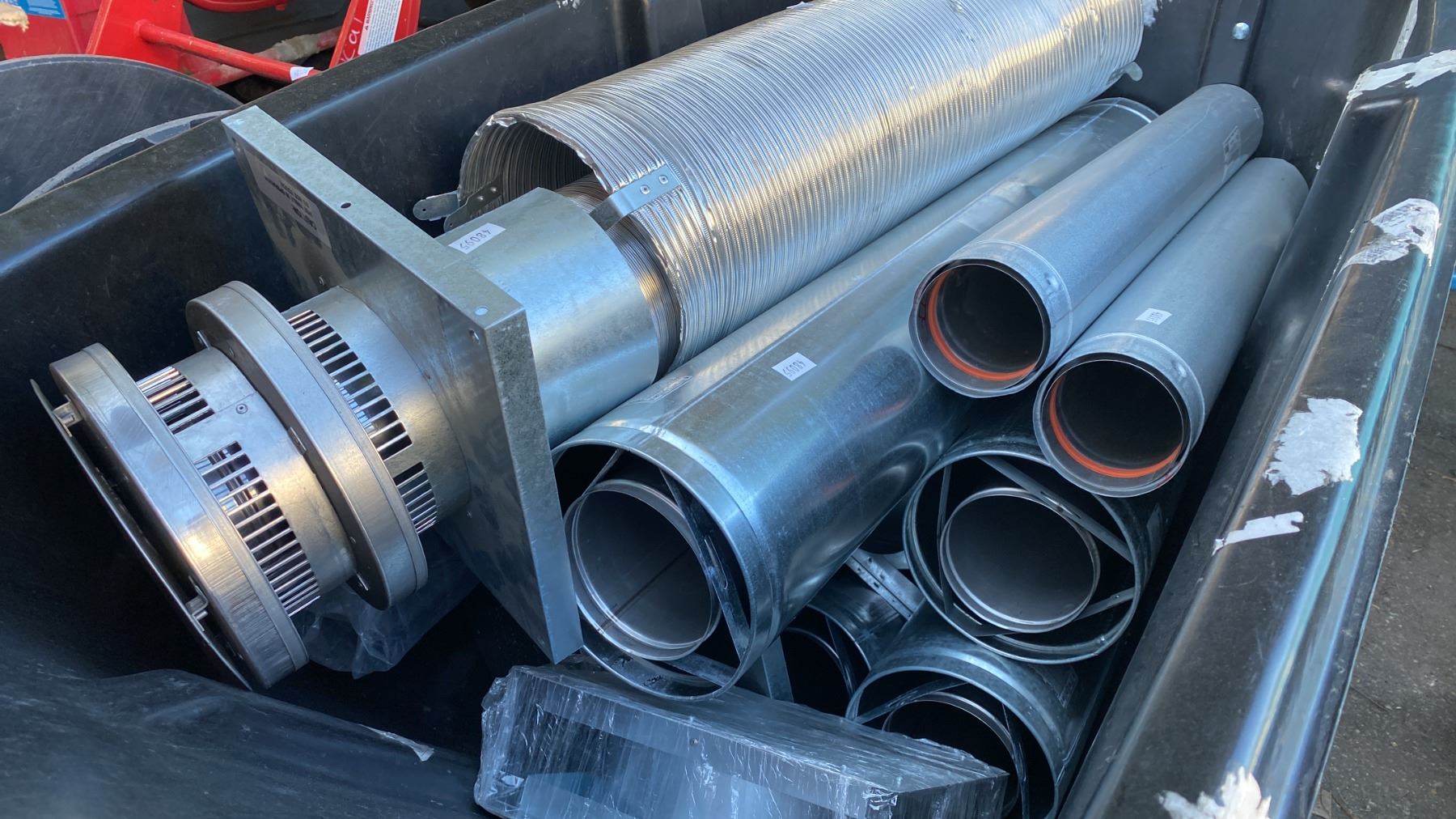 BIN OF ASSORTED FIREPLACE VENTILATION PIPE *BIN NOT INCLUDED*