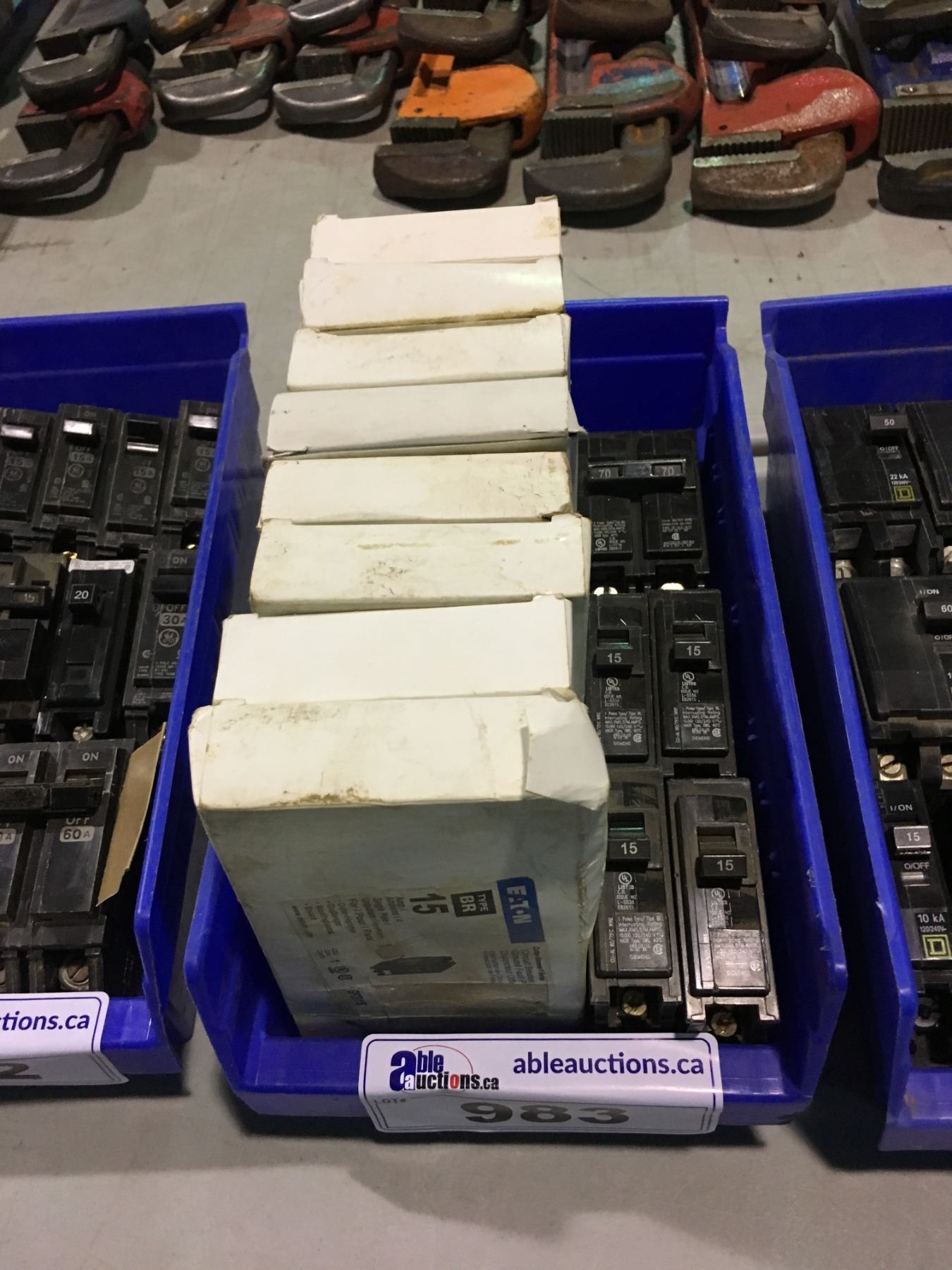 BIN OF ASSORTED INDUSTRIAL BREAKERS
