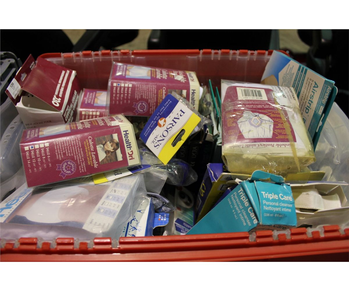 BIN OF ASSORTED MEDICAL PRODUCTS
