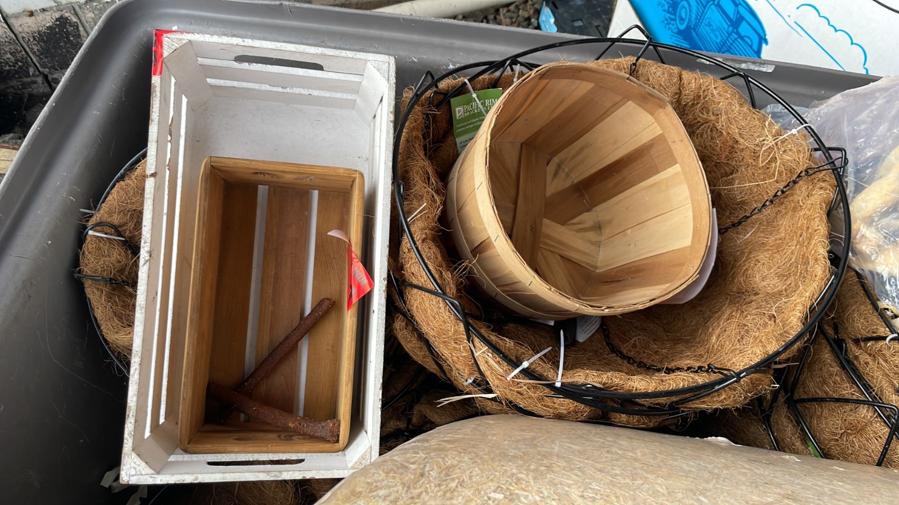 BIN OF ASSORTED PET SUPPLY PRODUCTS & PLANTERS*BIN NOT INCLUDED/MUST TAKE ALL*