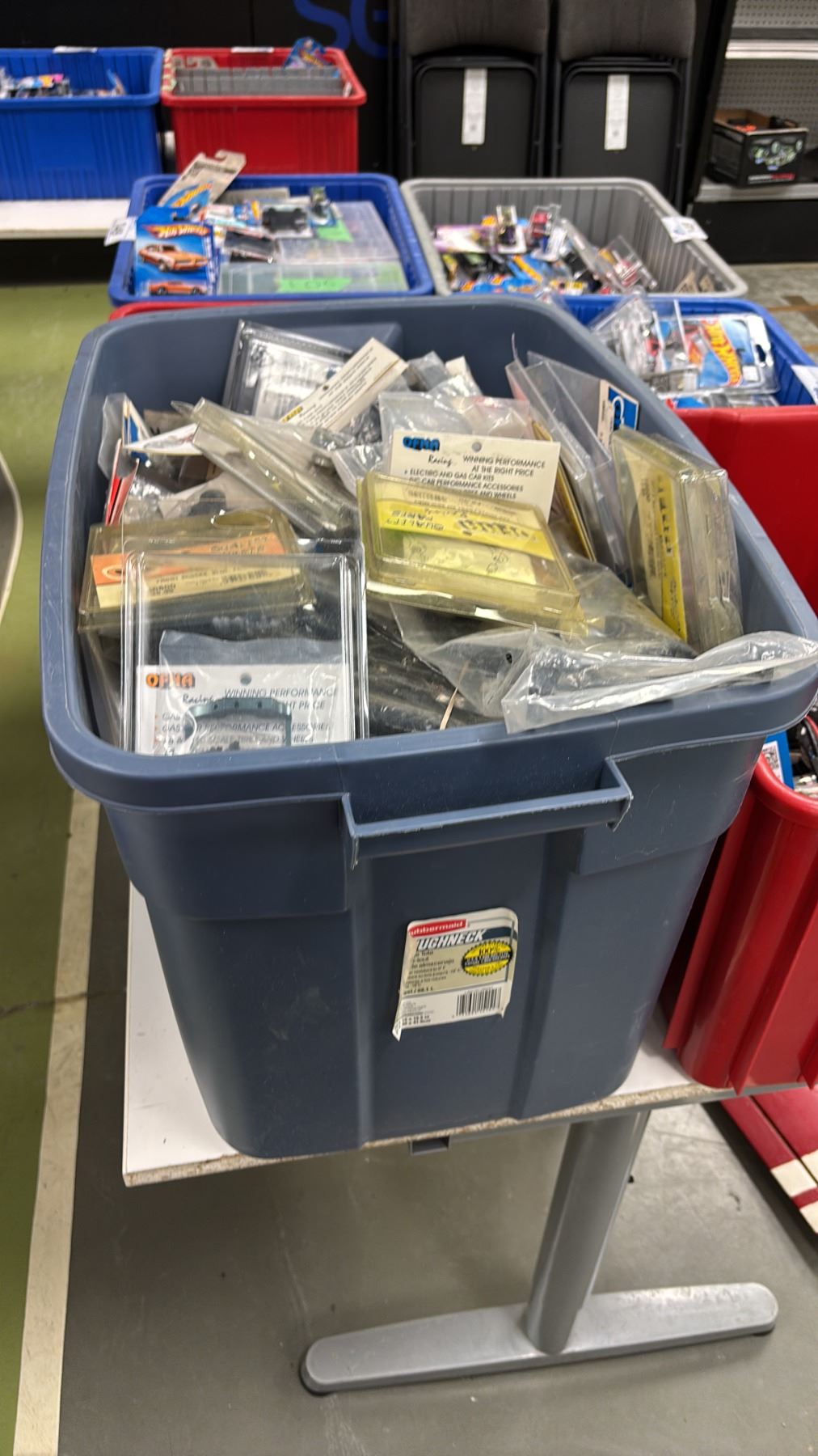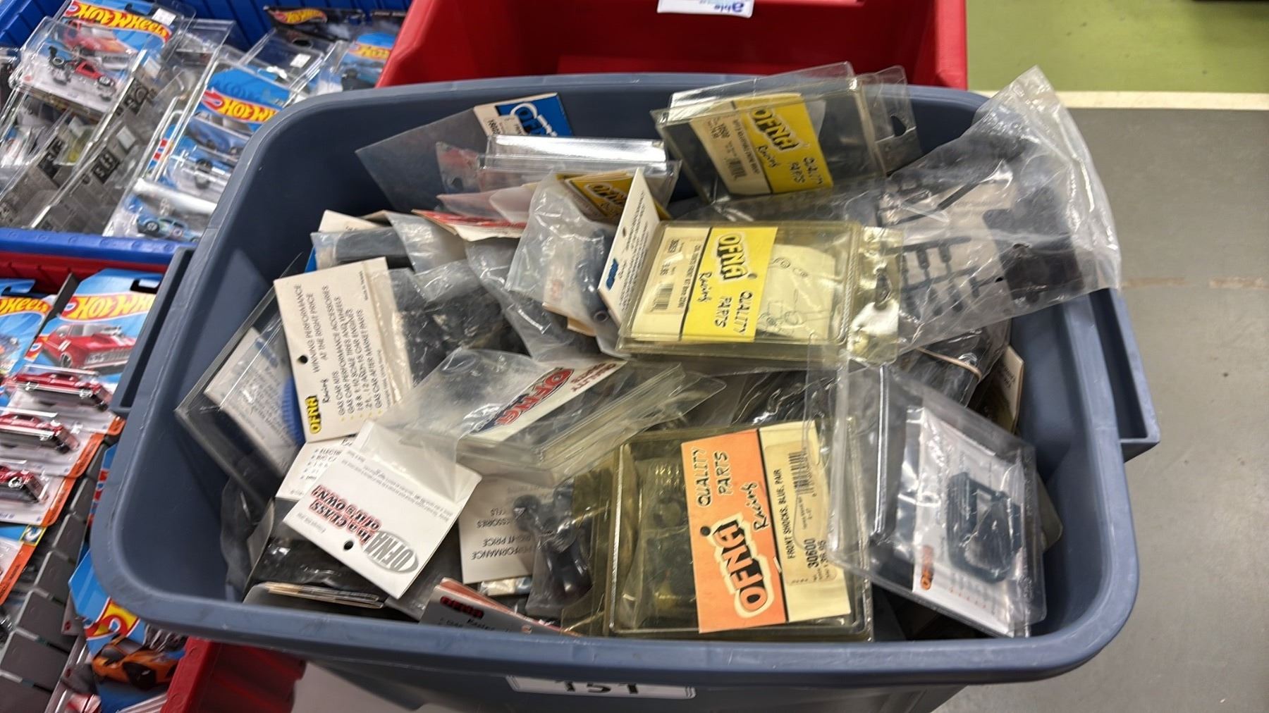 BIN OF ASSORTED R/C CAR PARTS & ACCESSORIES