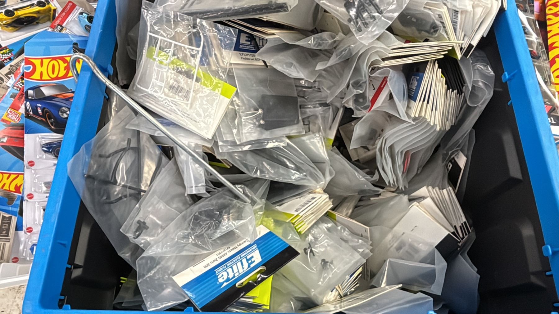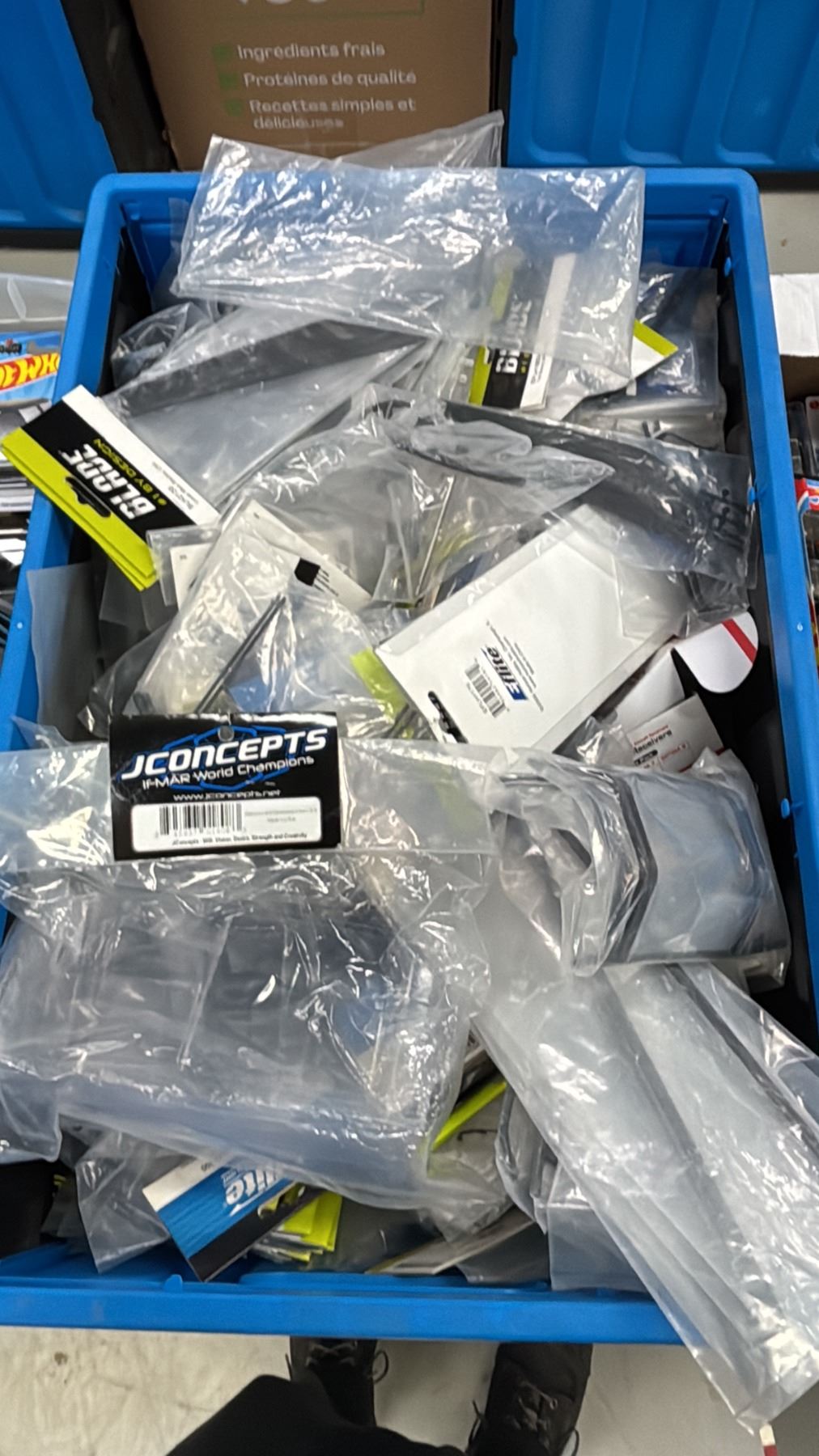 BIN OF ASSORTED R/C & MODEL CAR ACCESSORIES & PARTS