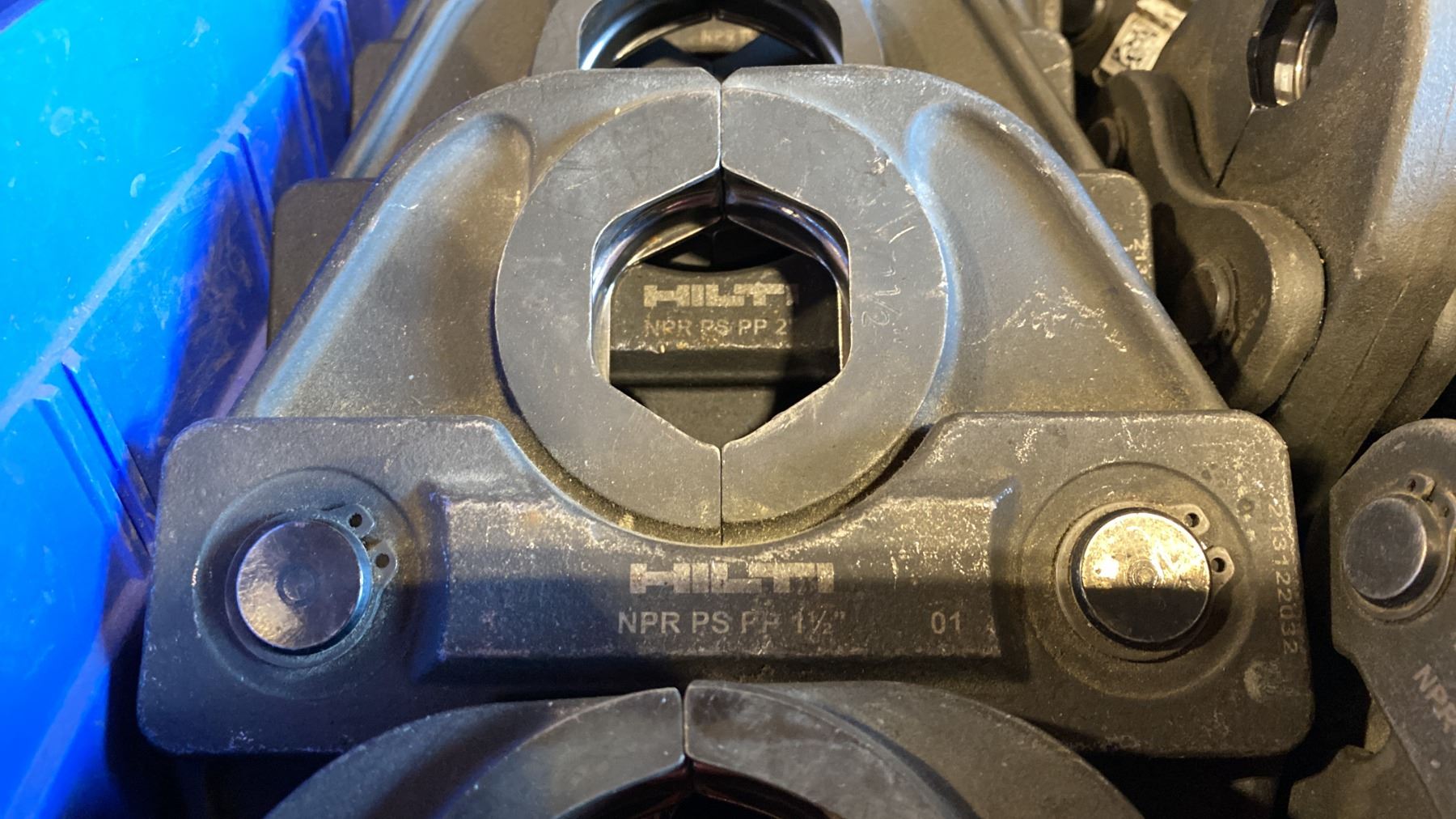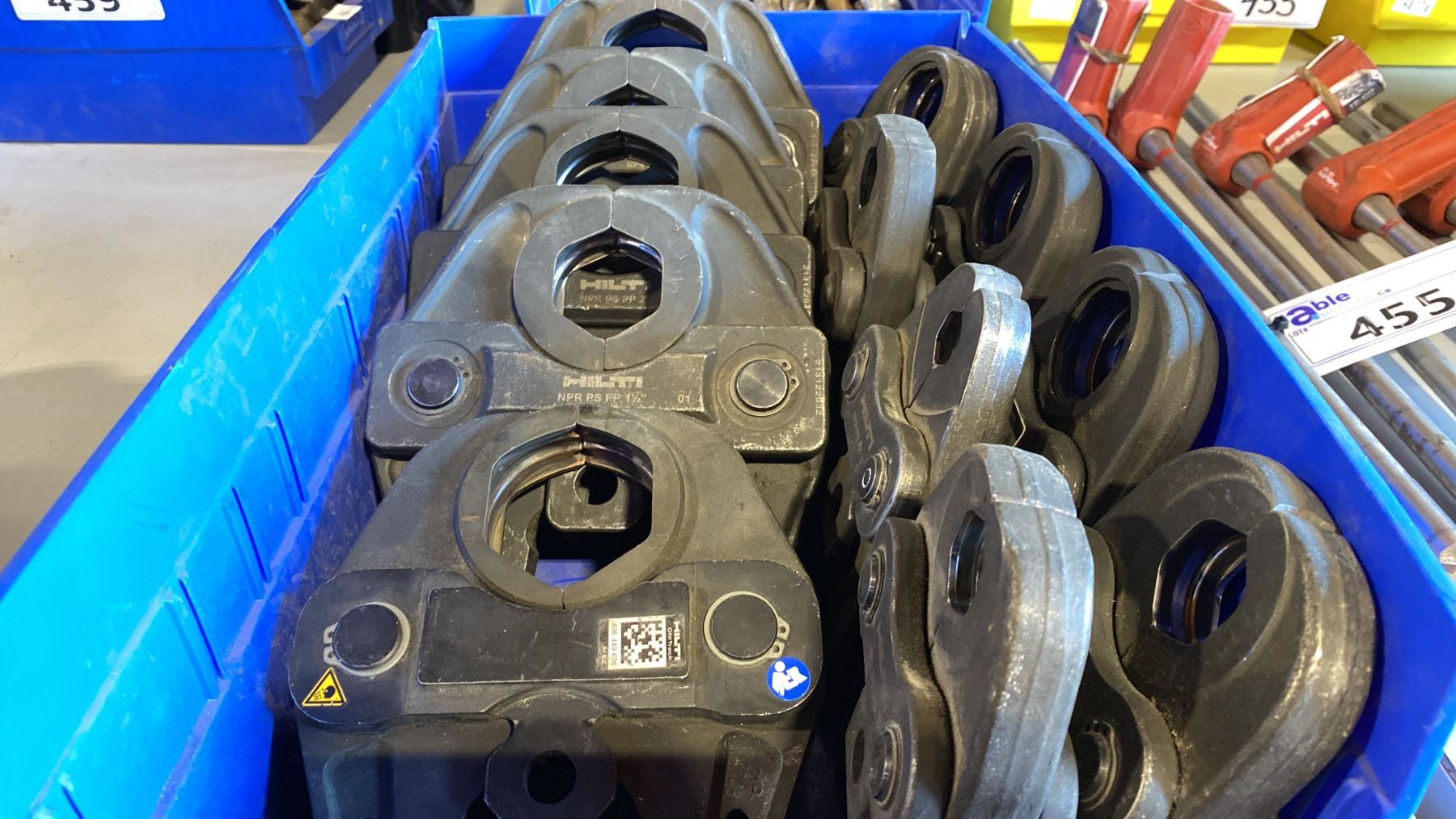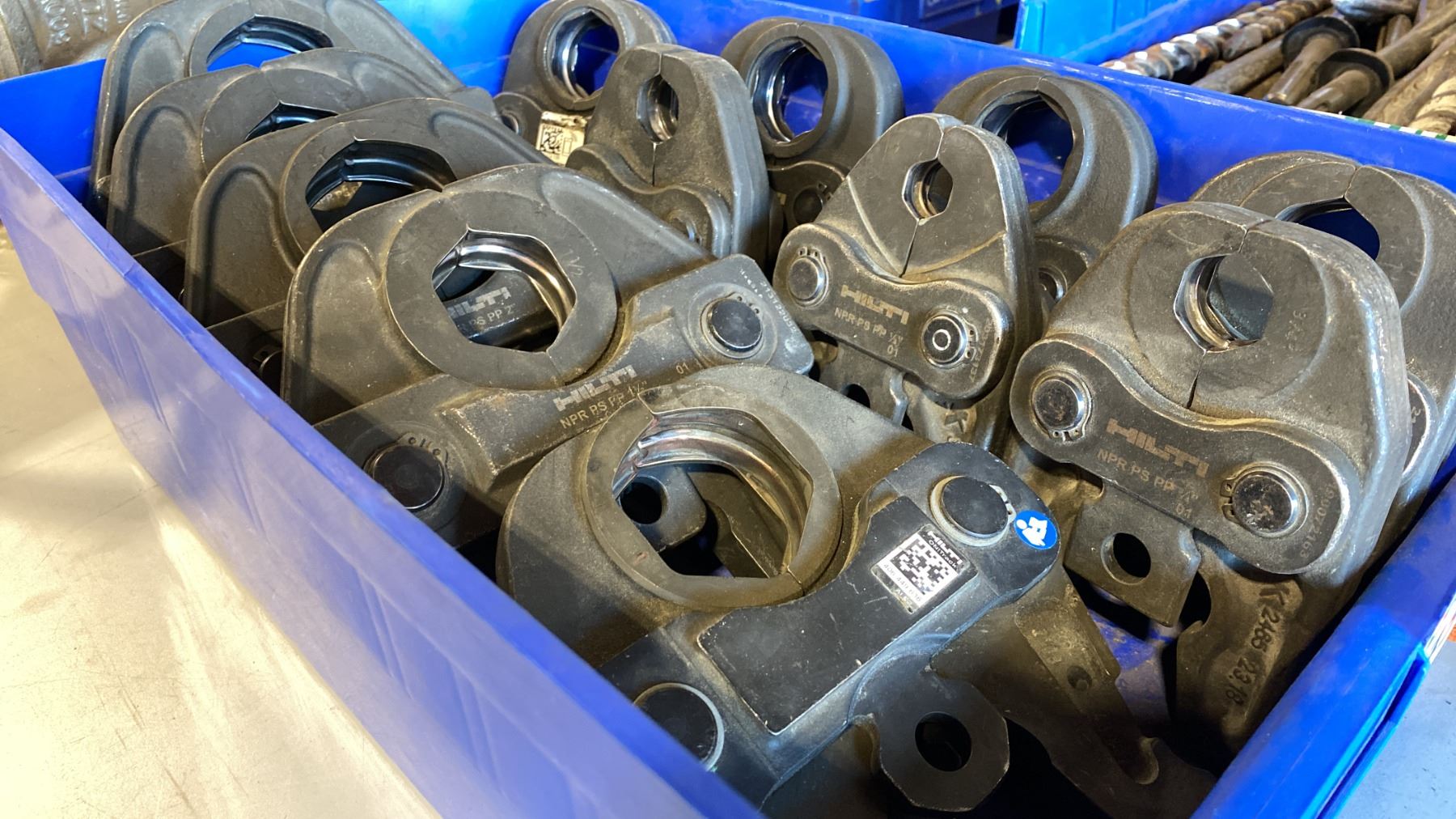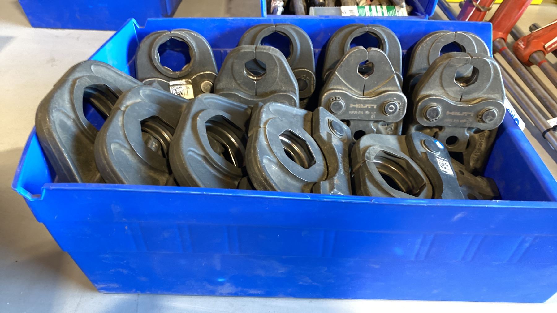 BIN OF ASSORTED SIZE HILTI PRESS JAWS