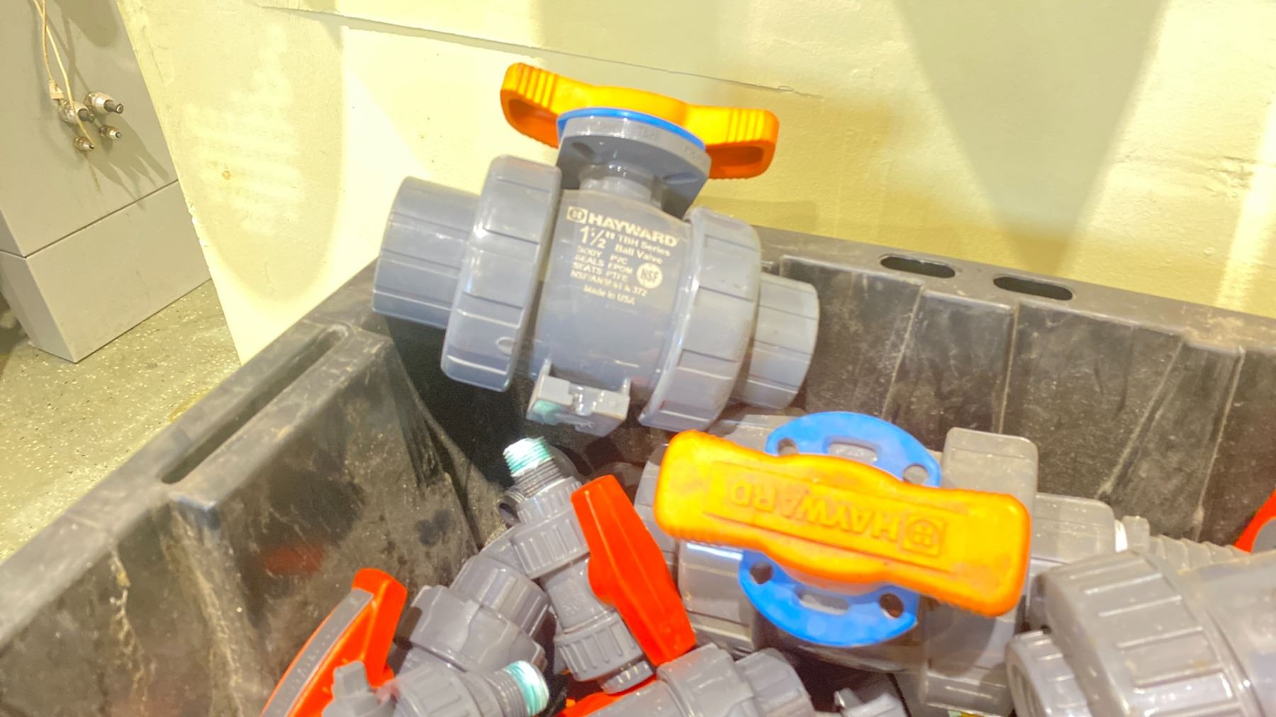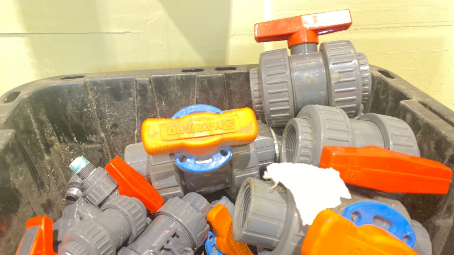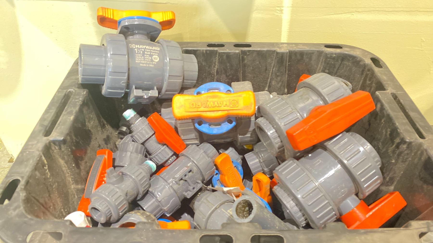 BIN OF ASSORTED SKID 80 BALL VALVES 1/2" - 2" THREAD & SLIP