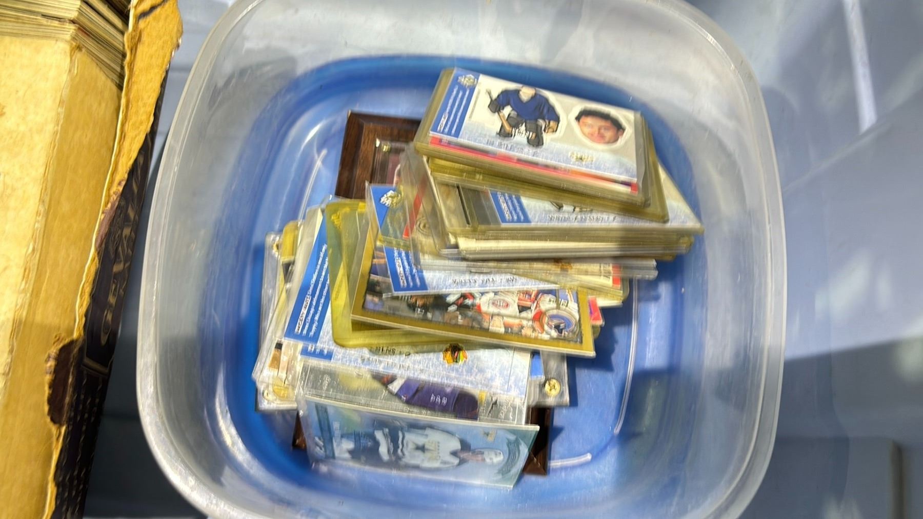 BIN OF ASSORTED SPORTED SPORTS CARDS