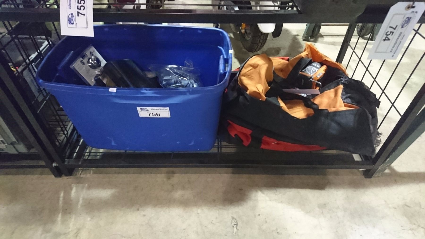 BIN OF ASSORTED TOOLS & RIDGID POWER TOOLS