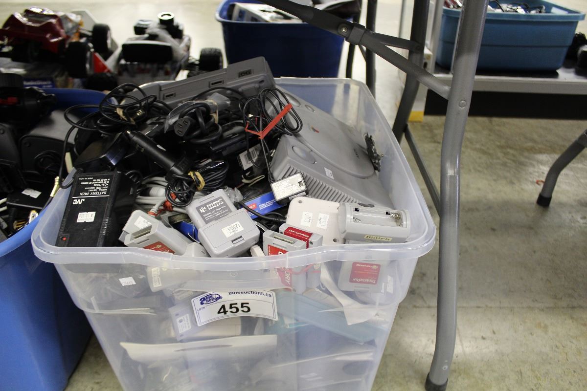 BIN OF ASSORTED VIDEO GAMES & PARTS, MISC ELECTRONICS